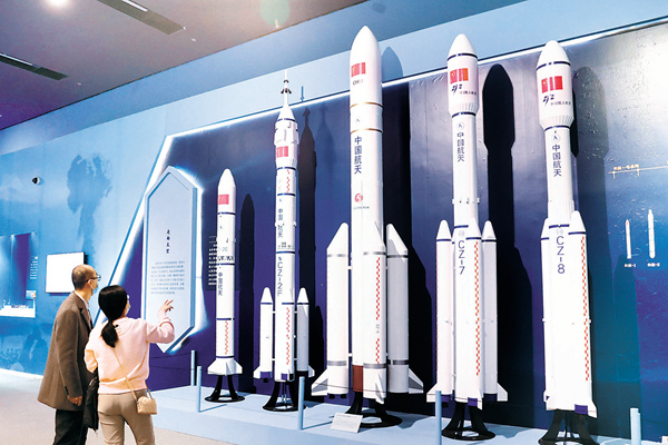 上图为观众在国家博物馆观看长征系列运载火箭;下图为观众在国家博物馆观看火龙出水模型,它也被称为世界上最早的二级火箭。(图片来源:视觉中国)