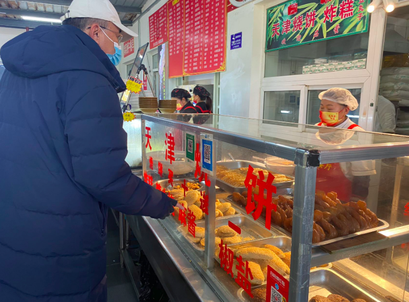 “给我来六个椒盐味的火烧!”刚练完太极的张奶奶对着天津烧饼炸糕的小窗口喊道。在这个小小窗口前面已经围满了顾客,店员熟练地将烧饼装袋并送到顾客面前,一套动作行云流水。张奶奶自从退休后每天都来紫竹院锻炼,也因为锻炼结识了很多志同道合的朋友。“我一练就三四个小时,懒得买菜做饭,在这儿解决中午饭非常方便。”