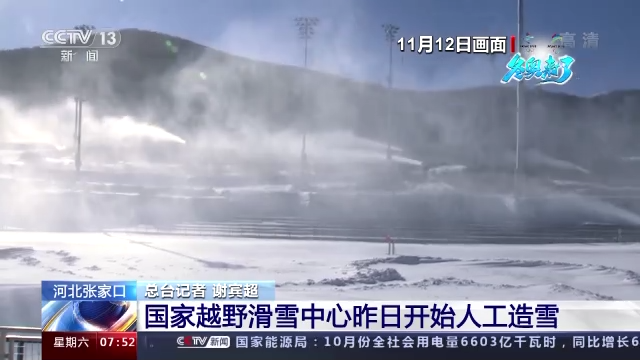 总台记者 谢宾超:这里是位于河北张家口崇礼区的国家越野滑雪中心,大家从现场可以看到,已经有十几台的造雪机正在现场同时进行作业,这也标志着国家越野滑雪中心今年为冬奥会造雪作业正式开始。