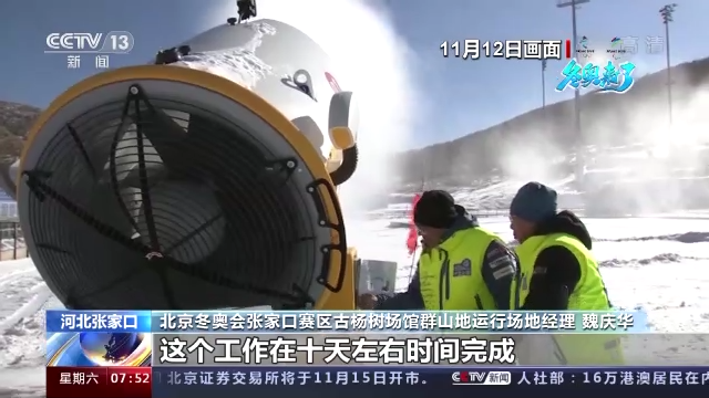 北京冬奥会张家口赛区古杨树场馆群山地运行场地经理 魏庆华:这个区域造雪的厚度要达到1米左右,而在线路赛道上,60厘米就足够了。我们首先完成是2.5公里以内的,1.5公里、1.8公里这些线路的造雪,这个工作在十天左右时间完成,剩余的场地再用一个月左右的时间完成造雪。