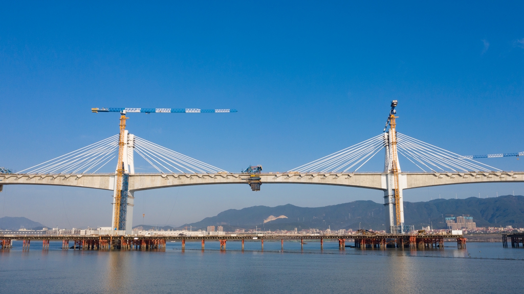 跨海建桥,即便是对“基建狂魔”来说,也并非易事。中铁十一局福厦项目部立足海域特点进行工艺、工法创新,先后攻克了海上超长栈桥、潮汐区围堰、大直径深水桩基、主塔索鞍定位等施工难题,创下“昆仑号”千吨级运架一体机等多项“中国造”之最,形成了矮塔斜拉桥索鞍快速定位施工工法等30余项科研成果,确保了大桥按时保质顺利合龙,加快了工程建设步伐。
