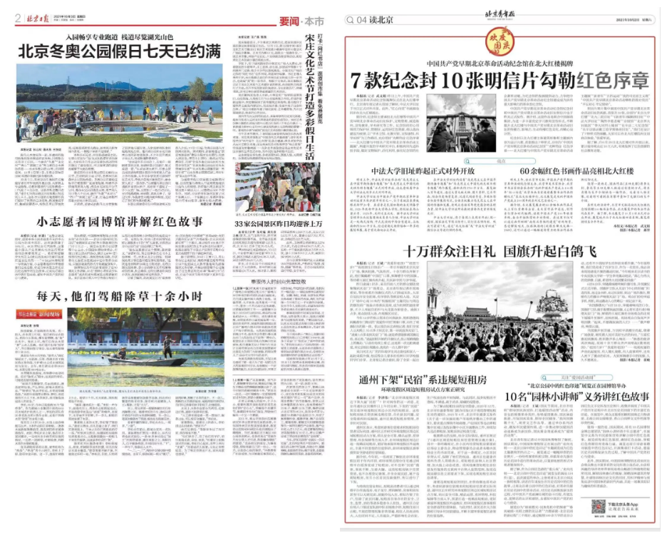 今年国庆期间,有10名园博馆金牌志愿团队“园林小讲师青少年志愿者”,在中国园林博物馆承办的“走向光明——北京公园中的红色印迹”展览中,义务为市民游客宣传讲解公园中的红色故事,受到《北京日报》、《北京青年报》的宣传报道和好评。