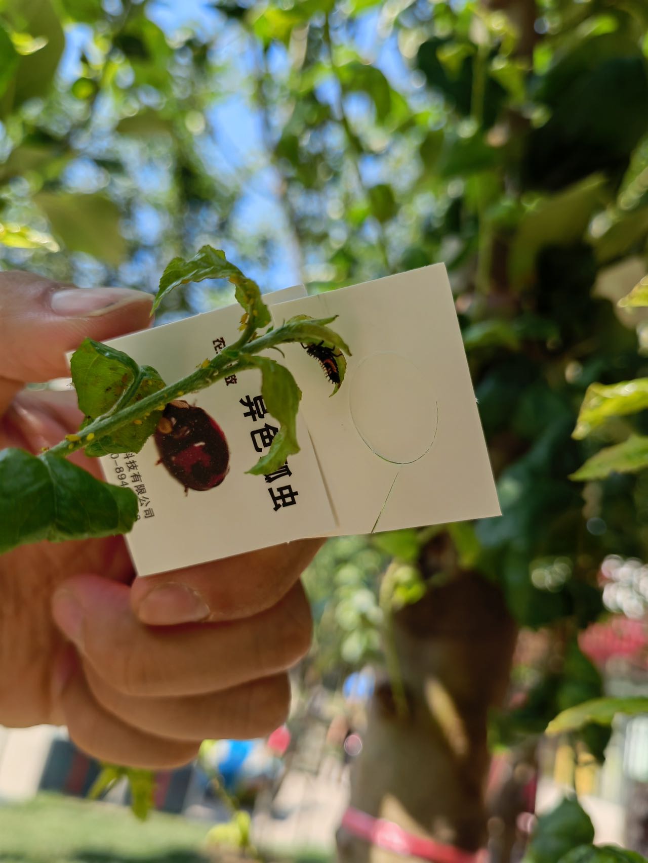 在新华大街、通胡大街、京榆旧线等城市副中心55条主干道边不乏海棠、碧桃、紫叶李、油松、龙爪槐的装点。驻足留意的市民会发现,在这些花灌木的树枝间总是悬挂着一个围成三角形的立体小纸壳,纸壳中是一颗颗长度两三毫米的卵粒。每年夏季投放后,这些卵粒就会长成一个个异色瓢虫的幼虫,它们是蚜虫的天敌。
