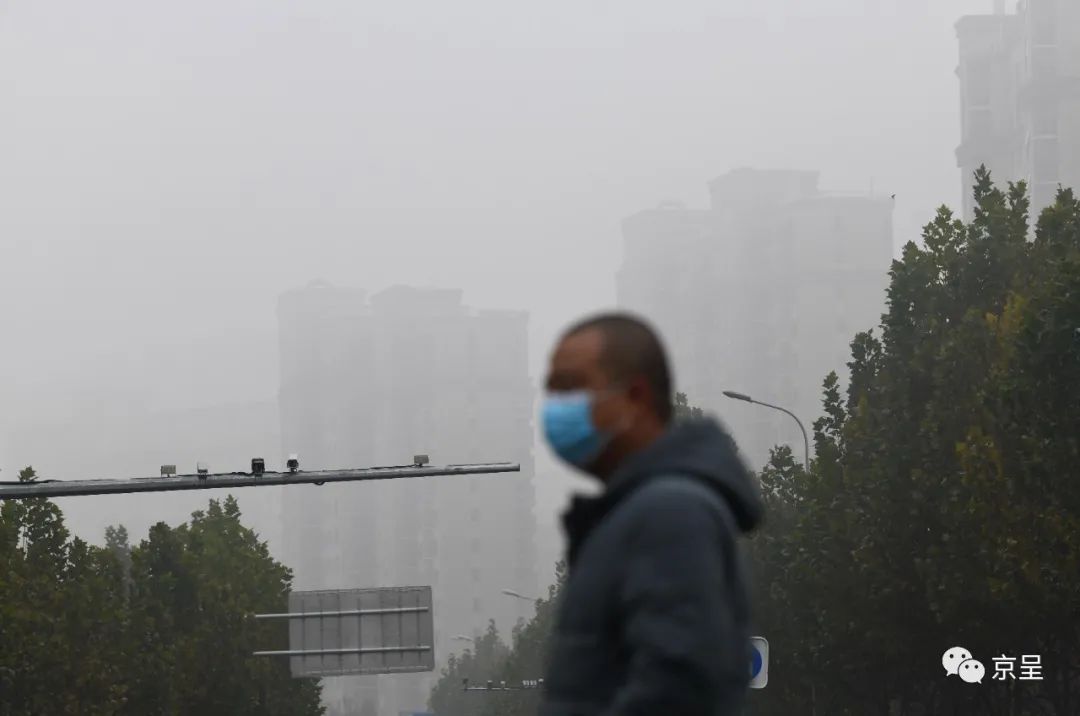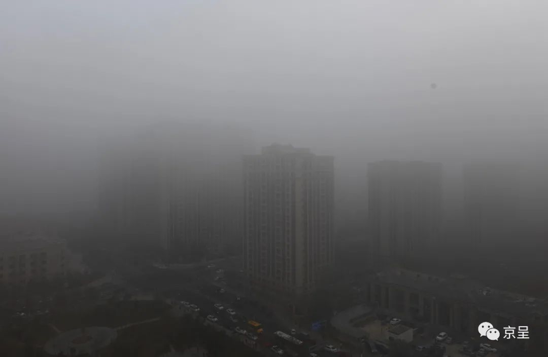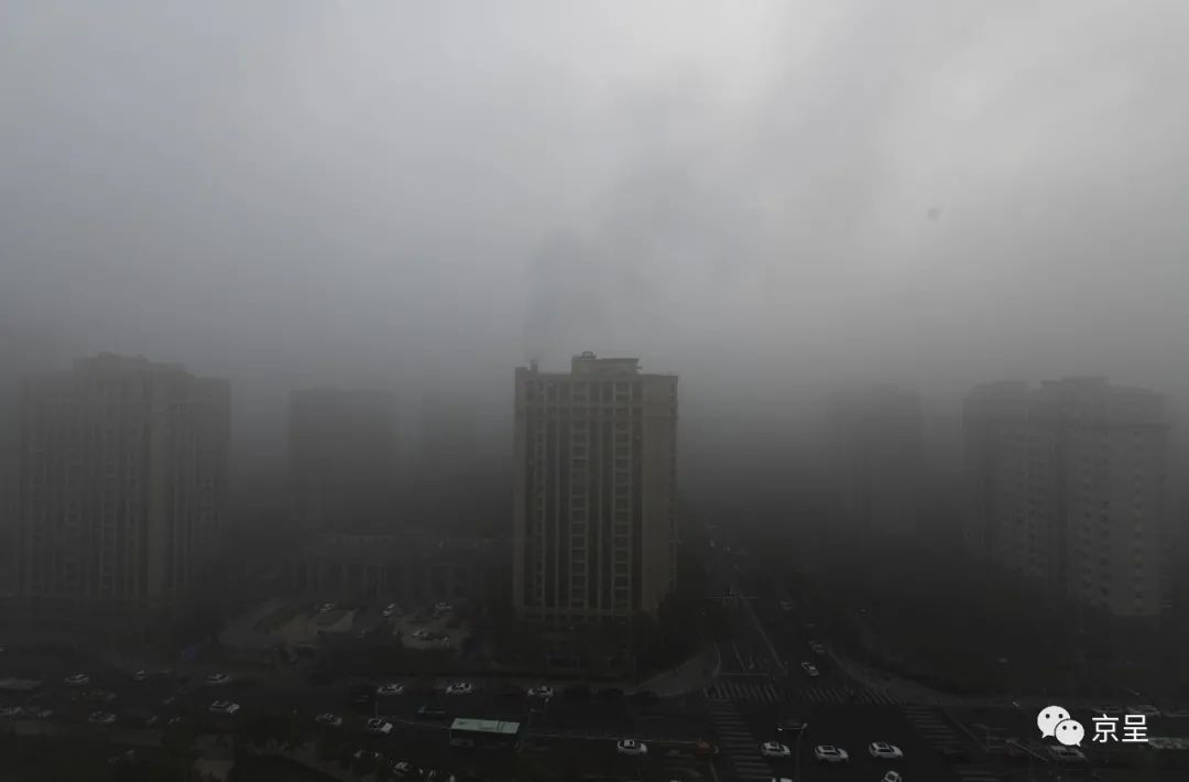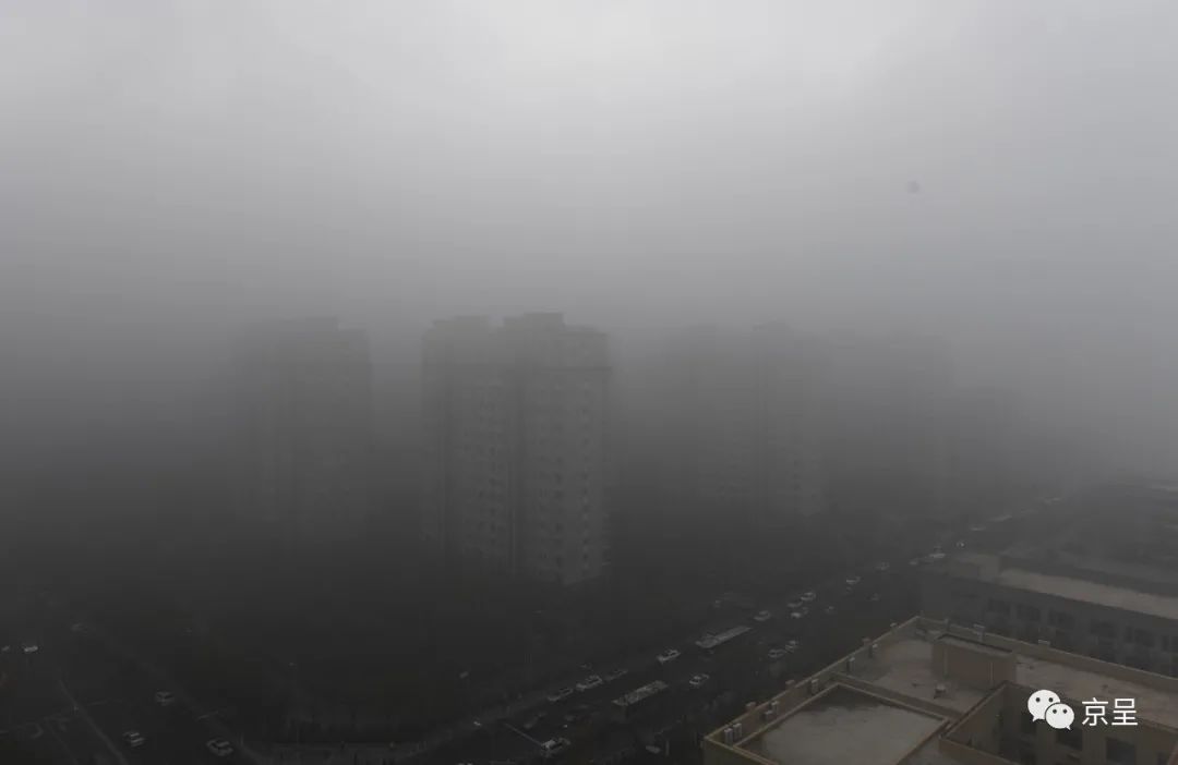 今天早上,北京有雾。
