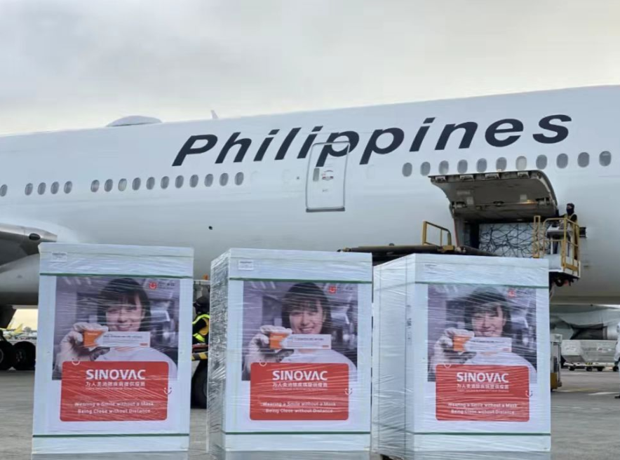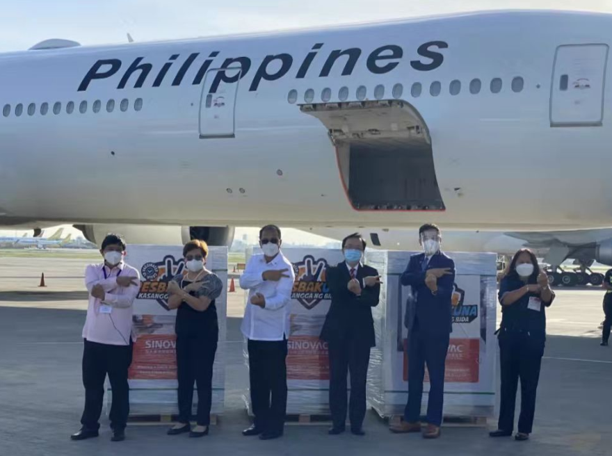 中国驻菲律宾使馆发布消息,11月17日,菲律宾政府采购的353万剂中国科兴新冠疫苗运抵马尼拉国际机场。