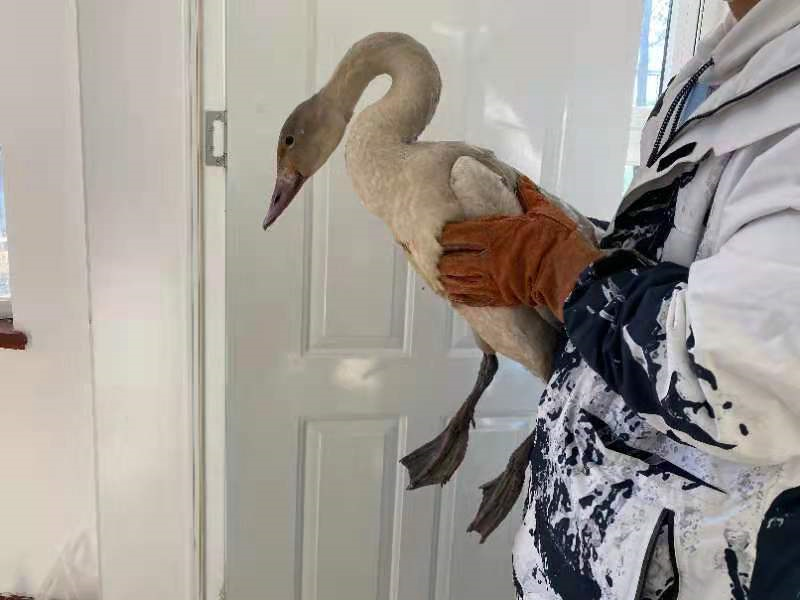 近日,一只野生飞禽落单飞进延庆区旧县镇东龙湾村赵女士家中,随即赵女士联系到区自然保护地管理处,经管理处的野生动植物保护救助中心工作人员上门确认,其为国家二级重点保护野生动物“天鹅”。