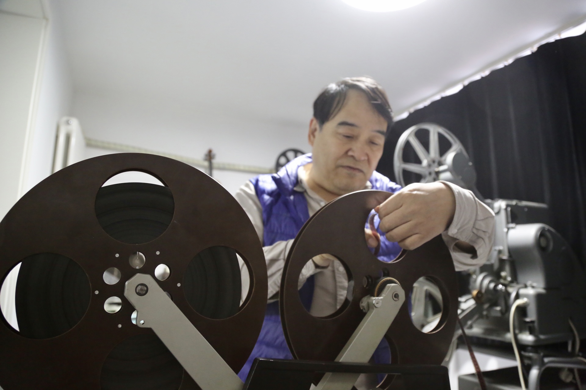 2020年11月27日,张艺谋执导的电影《一秒钟》在全国公映,这部影片被认为是“张艺谋写给胶片时代的一封情书”,影片再现了当时人们看胶片电影《英雄儿女》时的盛况,让人一下子回到了那个匮乏年代里,电影曾经带给人们的感动和信仰。自从2012年中国影院淘汰了胶片放映机之后,目前在北京市,仅有几家影院还保留有胶片放映厅,还在工作的胶片放映员,加起来也不到十人。在数字化时代,各种各样的数字和激光放映机成为了市场的绝对主流,对于曾经的胶片放映员来说,这是一段美妙的职业之旅,回味无穷,而对于那些喜欢收藏胶片放映机的爱好者而言,现在正逢其时。11月初,本报记者走进两位胶片放映机收藏者的家中,采访了他们跟胶片电影的不解之缘。