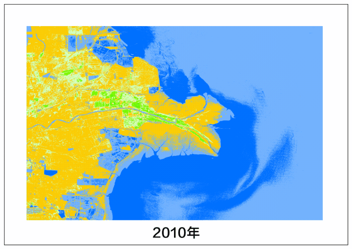 在黄河三角洲地区近10年卫星影像中我们可以看到,黄河三角洲地区生态修复成果巨大。近10年来,黄河三角洲地区形态已趋于稳定、面积整体呈现着稳中略增的态势。