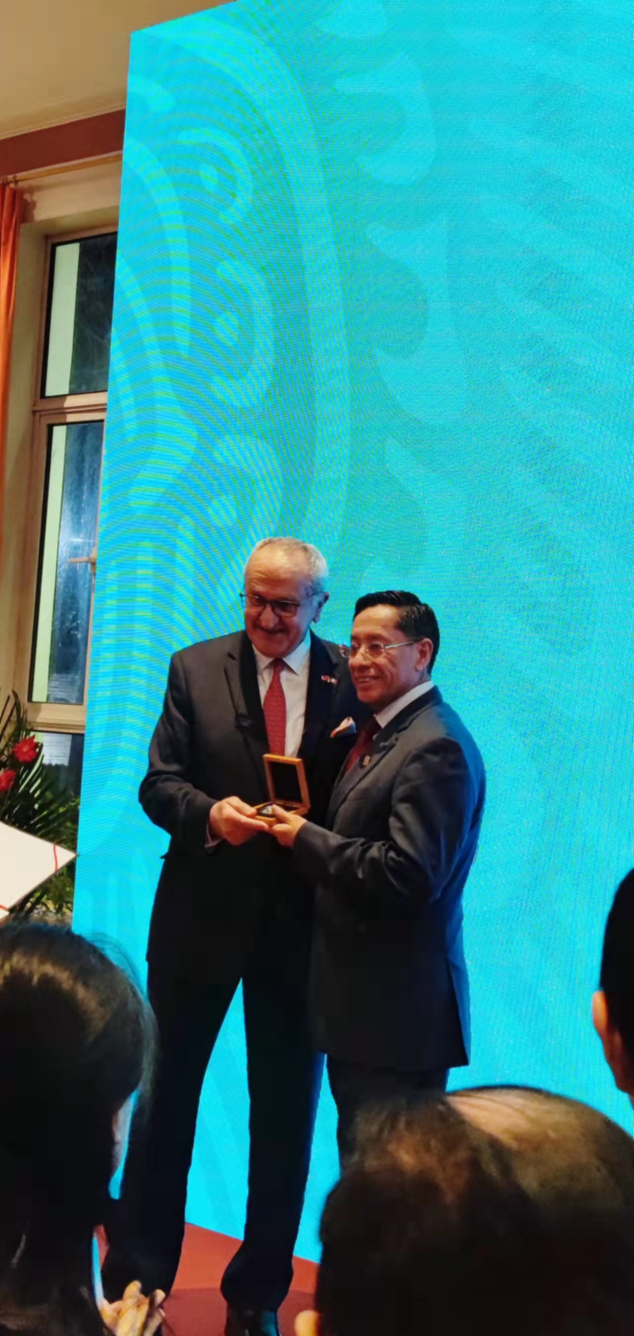 墨中两国在科学、技术、工艺、教育及文化等领域的合作已成为双边关系的核心构成部分,有鉴于此,施雅德大使代表墨西哥政府向在北京科技大学冶金与生态工程学院任教的墨籍专家科内霍教授颁发“墨西哥杰出公民”荣誉称号。今年9月30日,科内霍教授也获颁中国政府“友谊奖”,这是中国政府为表彰在中国现代化建设和改革开放事业中作出突出贡献的外国专家而设立的最高荣誉奖项。