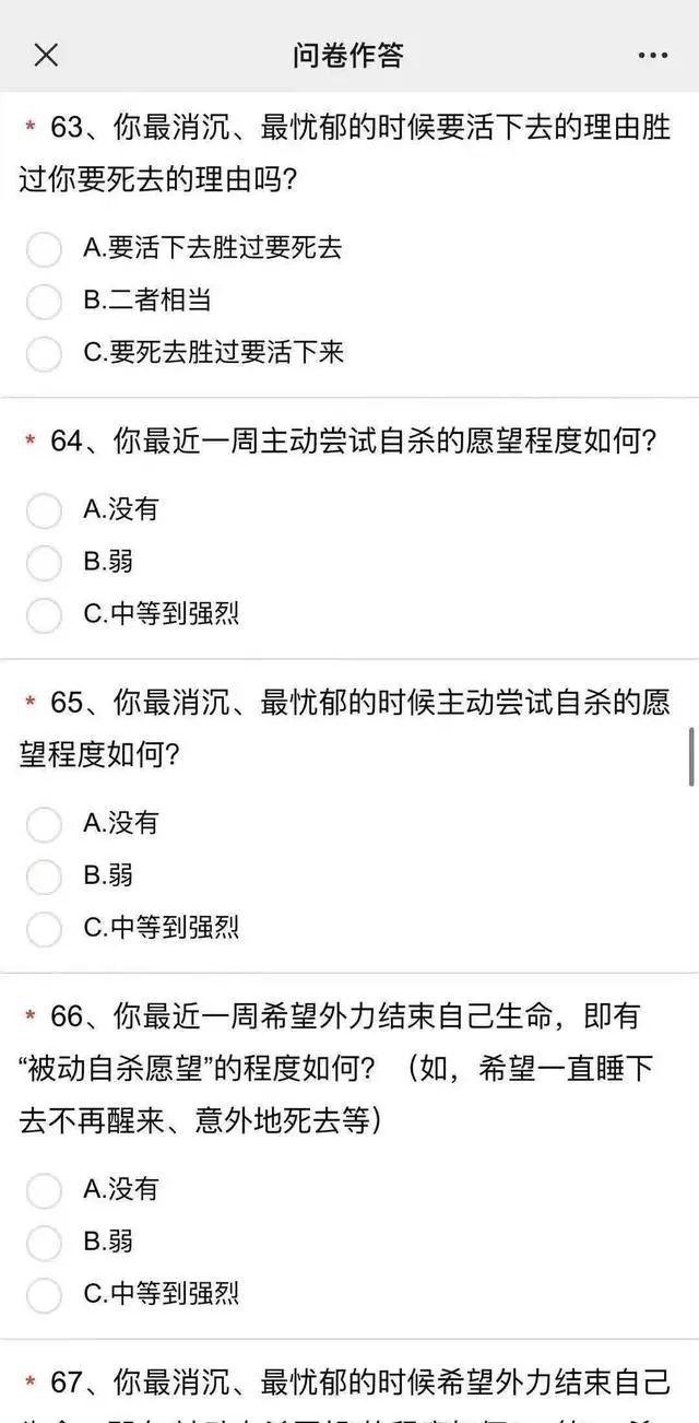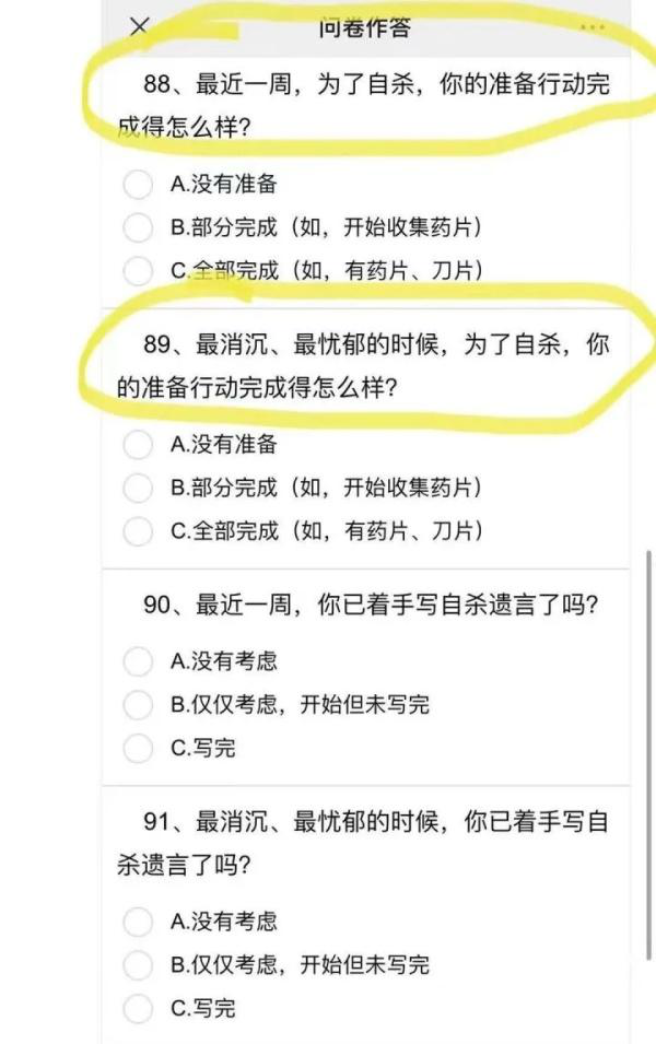 相关问题竟然引自《Beck自杀意念量表》,