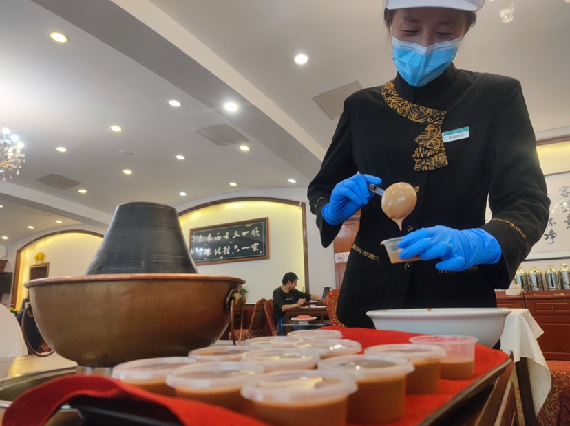 除了手切鲜羊肉受热捧,这家老字号的名菜砂锅散丹也在线上平台卖得火热。据又一顺经理佟海波介绍,最近一段时间,砂锅散丹的外卖销量已经增长到平时的三四倍。“点这道菜的基本都是老顾客,因为这道菜费时费力,还得用牛骨熬制出上好的底汤,吃着热乎暖胃,也有助于御寒。”佟海波说。