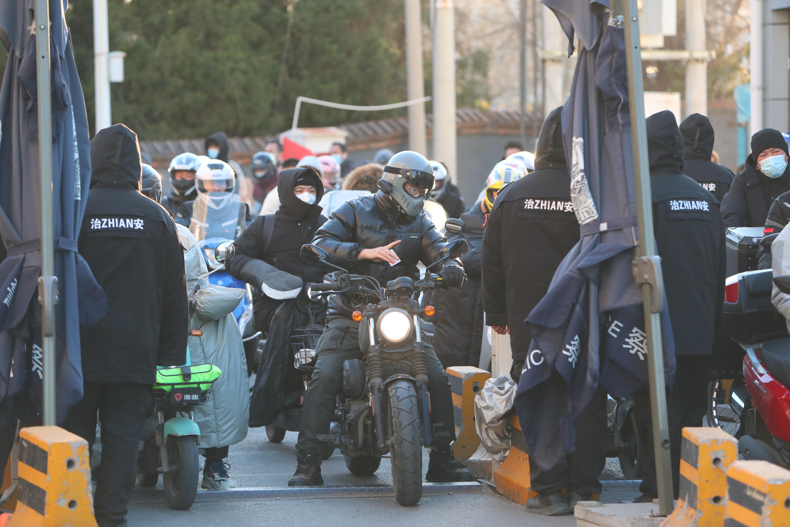行人及电动车、摩托车等非机动车则通过最右侧的专用通道有序过站。查验闸机不断发出“通过验证”的提示音,行人和骑车人员刷身份证后,核酸检测信息也一并出现,通过验证即刻过站,几乎没有排队情况。