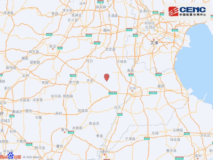中国地震台网正式测定:11月22日14时21分在河北沧州市河间市(北纬38.46度,东经116.40度)发生2.8级地震,震源深度12千米。