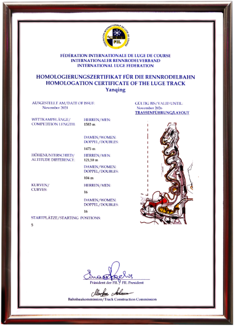 对北控京奥公司和各参建单位来说,“雪游龙”赛道认证证书是一份含金量极高的“竣工验收合格证”,它标志着冬奥延庆赛区国家雪车雪橇中心在“软件”和“硬件”方面,完全具备举办国际大型赛事的必要条件。