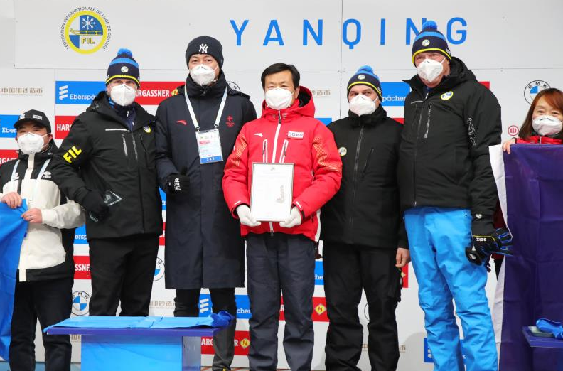 11月21日晚,“相约北京”2021/2022赛季国际雪橇联合会雪橇世界杯中国北京延庆站比赛在“雪游龙”国家雪车雪橇中心圆满落幕,世界杯比赛颁奖仪式结束后,国际雪橇联合会主席埃纳斯·弗格力斯向北控集团颁发了国家雪车雪橇中心雪橇赛道认证证书,并赞扬业主团队在雪橇测试赛的各项保障,对所有工作人员的付出表示由衷感谢。