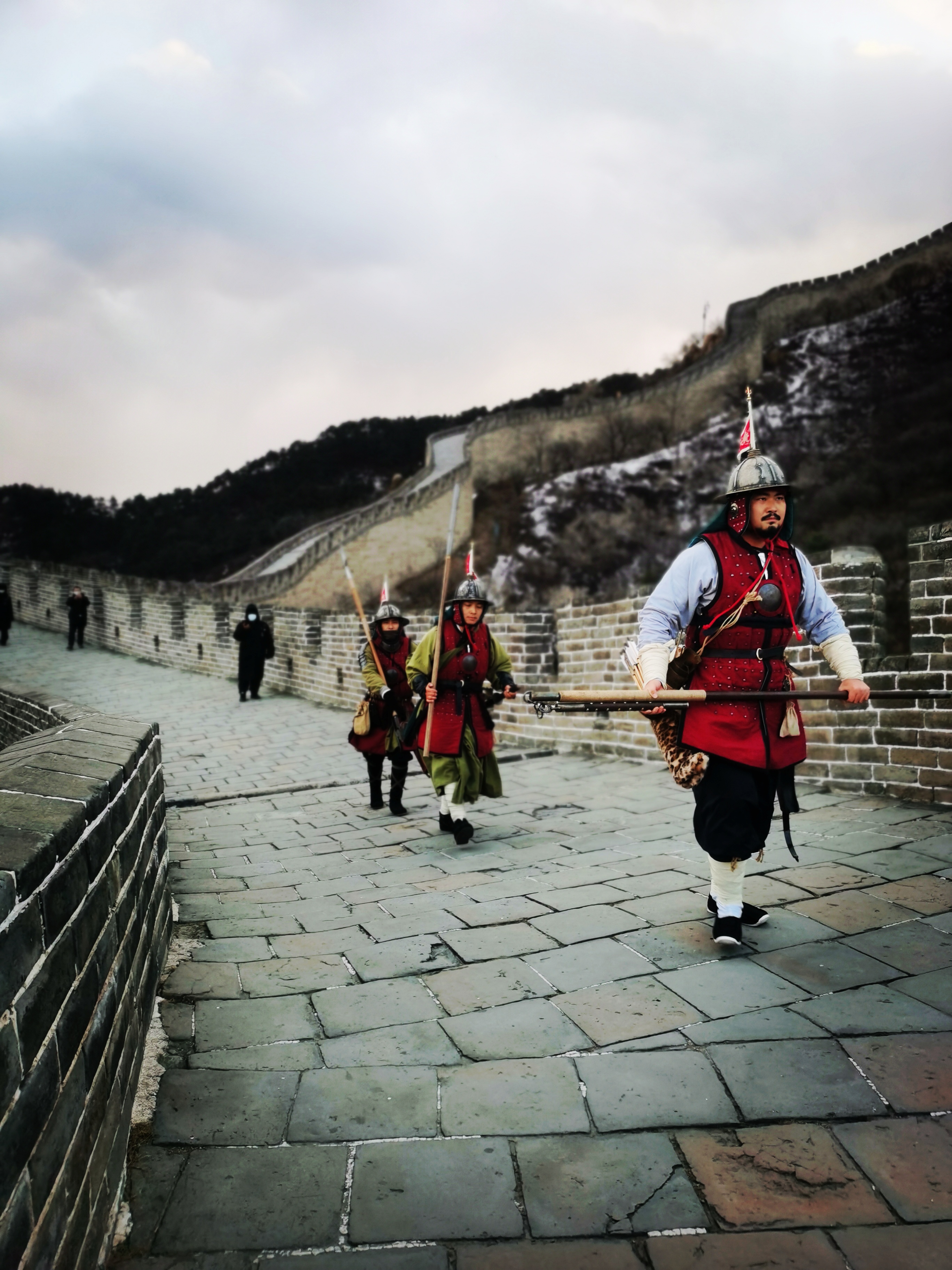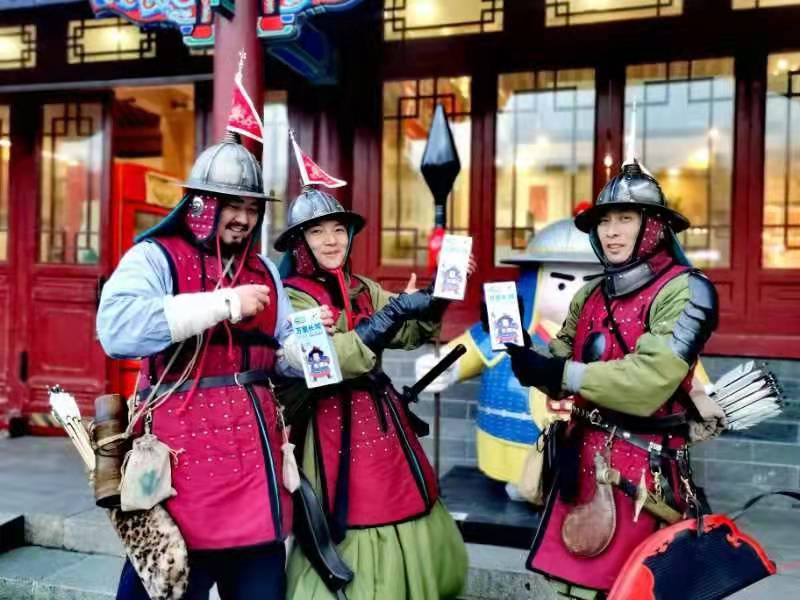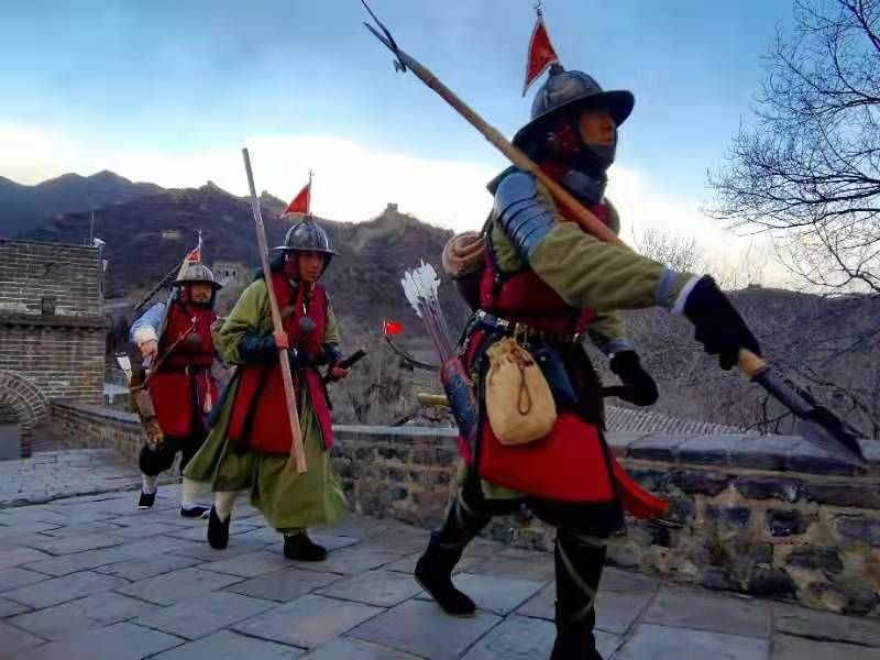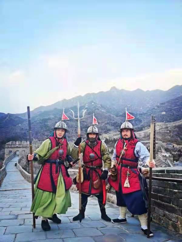 11月21日,夜不收·历史重演小组中的3人来到八达岭长城景区,上演了穿越一幕,带给大家强烈的沉浸式视觉感受。他们变成500年前的明朝士兵,打卡中国长城博物馆了解长城文化,登城戍边,逛长城礼物文创店,和八达岭长城文创产品“明小兵”雕塑来“撞脸”,还不忘来上一根“明小兵”雪糕。