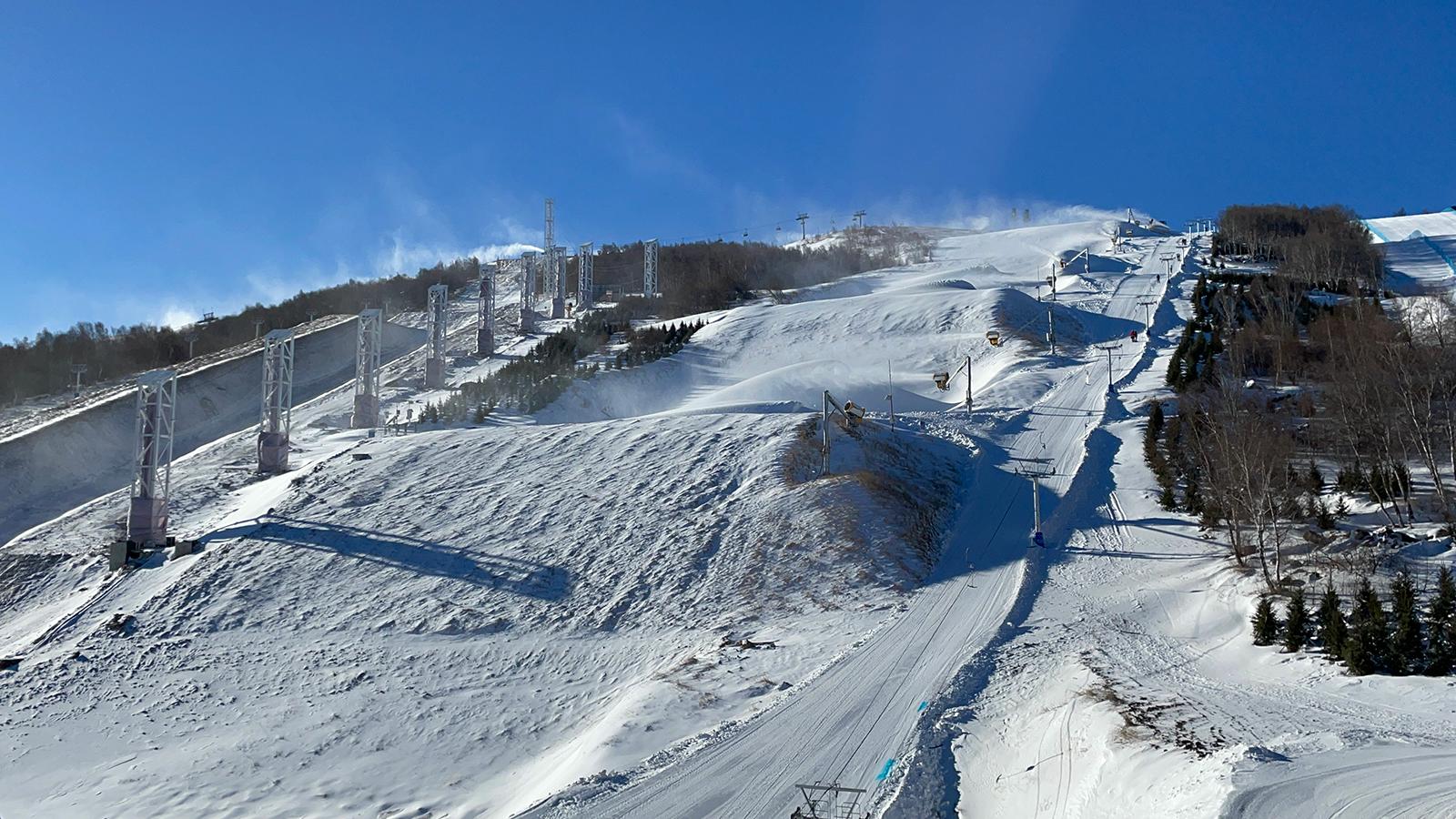除了追求高标准,云顶场馆群还在场馆建设中凸显中国特色,其中最具代表性的便是坡面障碍技巧赛道上的“长城”造型。据束文介绍,冬奥会赛时,赛道设计者计划在坡面障碍技巧赛道上建设更宏伟的“长城”。