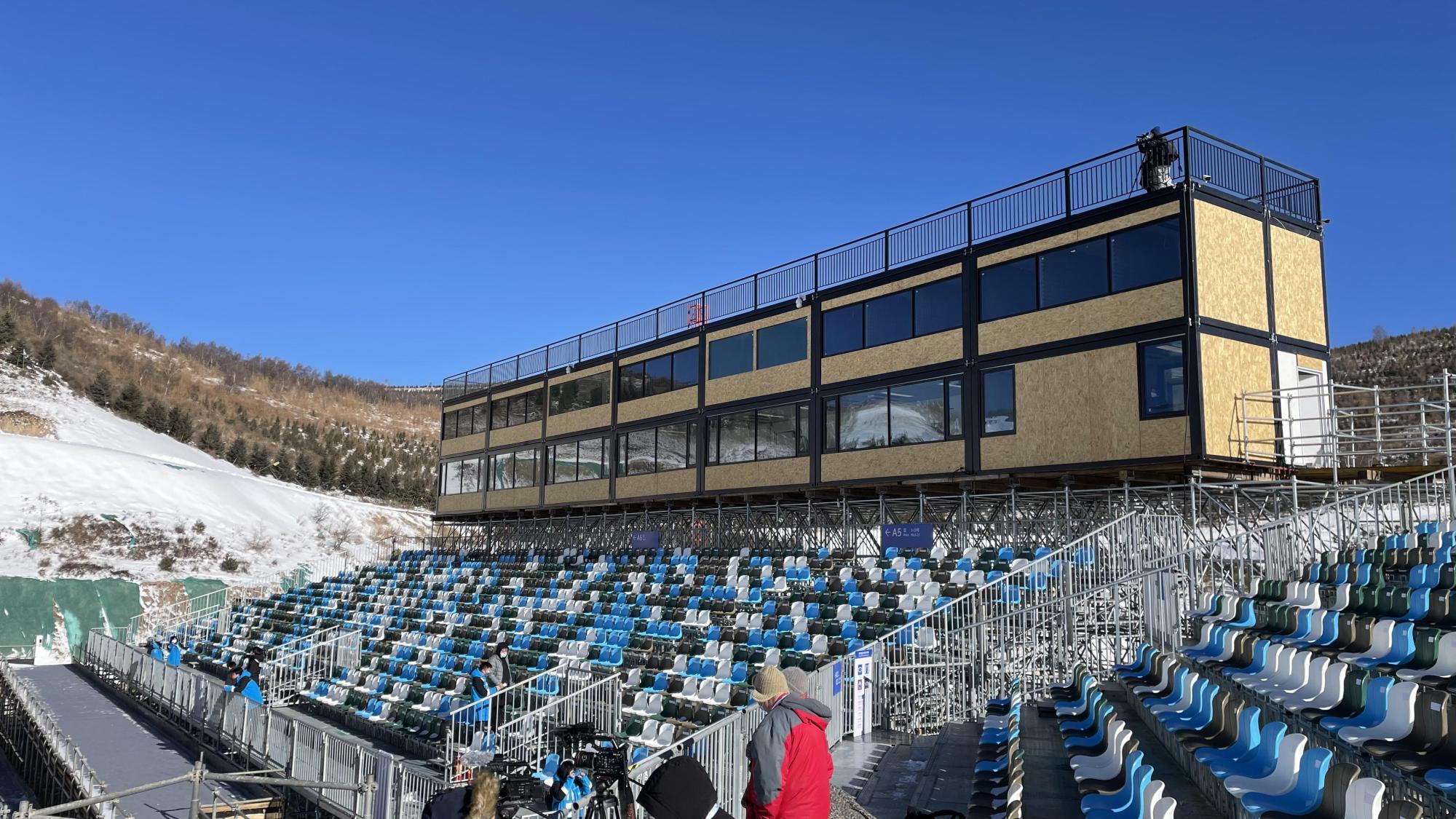 在北京2022年冬奥会期间,雪上项目场馆内的很多功能性设施都是临时建筑。据云顶场馆群后勤副主任束文介绍,云顶场馆群的绝大多数临建已经完工,相关团队现在还需根据奥林匹克广播服务公司提出的新要求对场馆景观等进行调整。