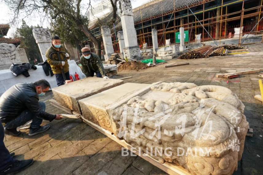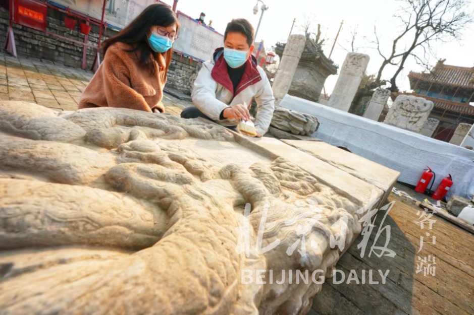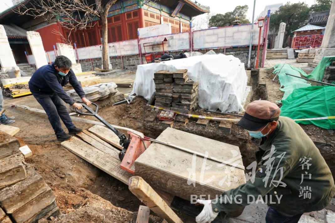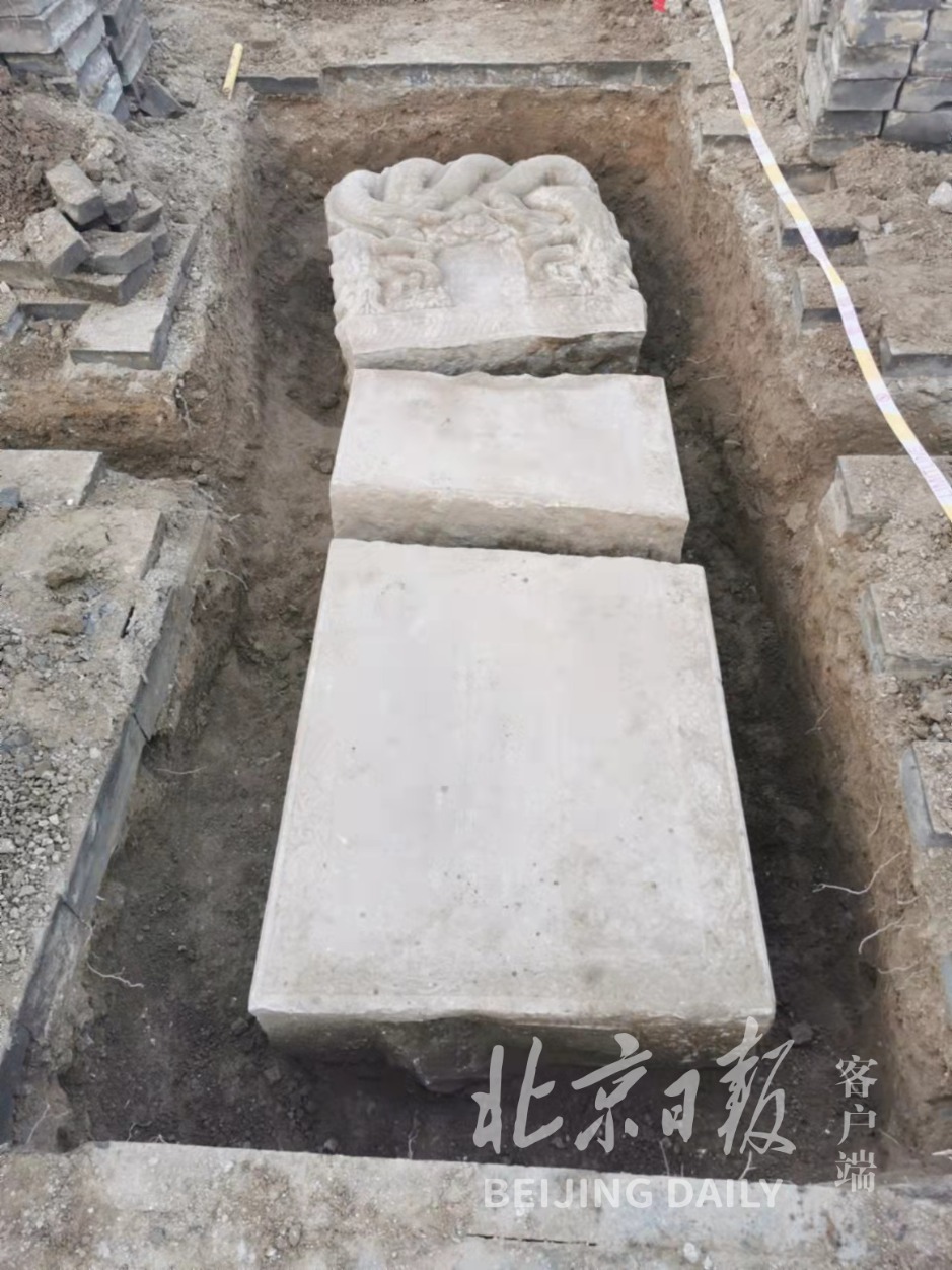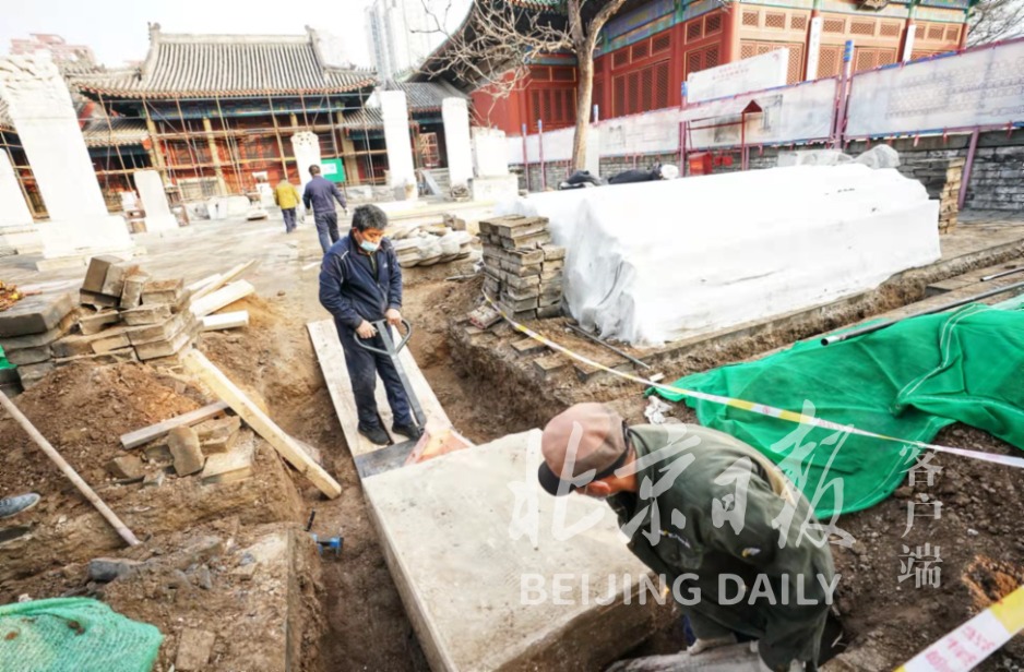 11月27日,随着最后一块碑身被从土中移出,近期在北京民俗博物馆安防工程铺设管线工作时发掘的明代天启七年曹老虎观白纸圣会碑全部出土,距今已有390余年历史。