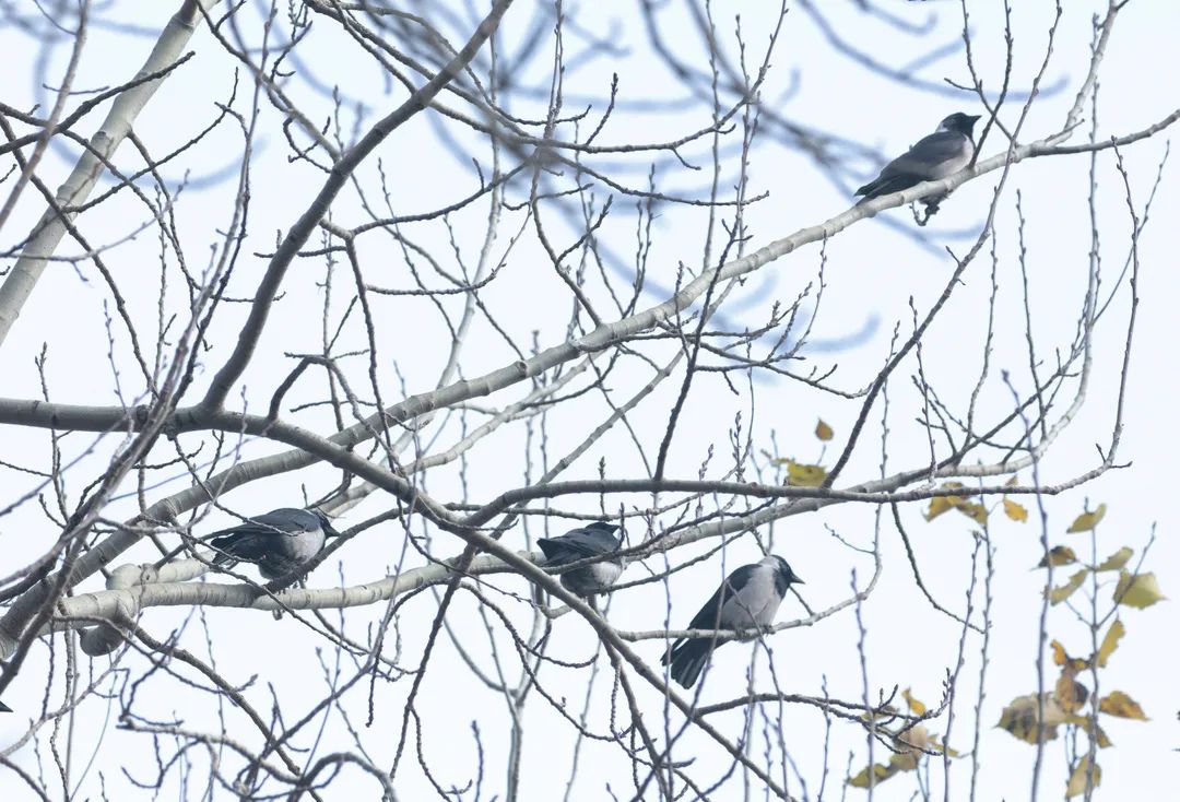 达乌里寒鸦站在枝头,享受晨光暖阳。小天鹅步履蹒跚地在冰面行走,开始早上的觅食活动。