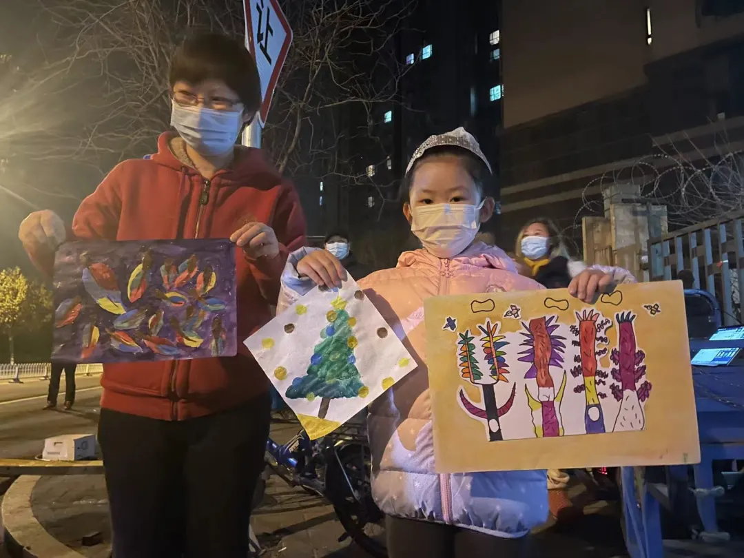 ▲解封后,富力桃园C区小朋友郭芊雨把自己画的画送给志愿者