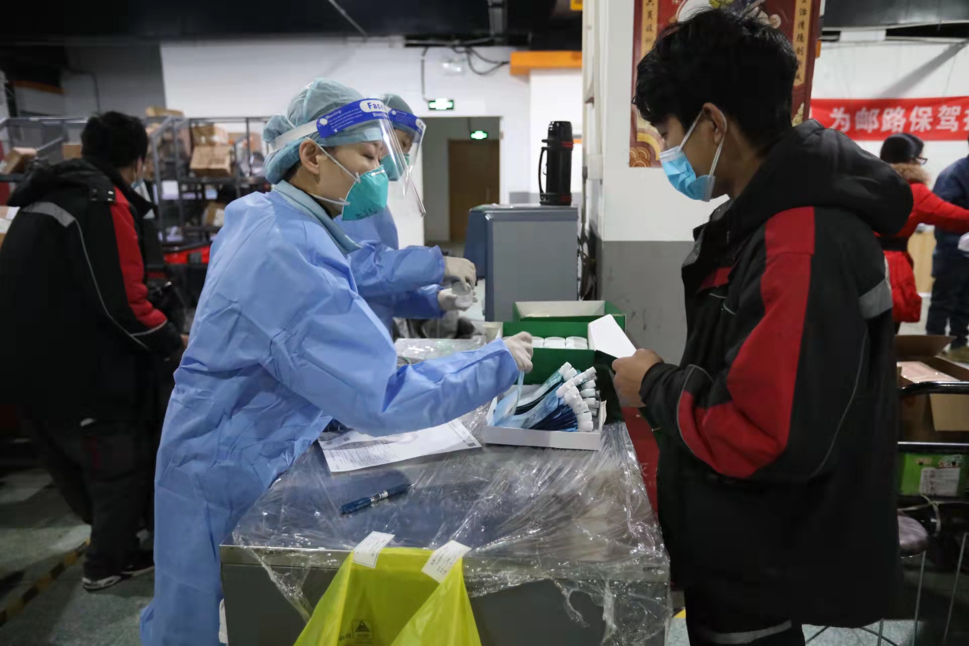 工作人员引导快递小哥有序排队,领取体检表,介绍体检流程及注意事项,并为完成体检的职工发放早餐。本次体检活动历时4个小时,共有71名快递小哥参加了体检。此次体检充分结合新就业群体的工作性质、年龄结构,合理安排体检项目和体检时间,突出方便性和快捷性。