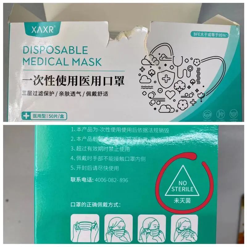 这些口罩中,还包括一款商品名为“一次性使用医用口罩”的产品,但该产品明确在包装上注明“未消毒”。
