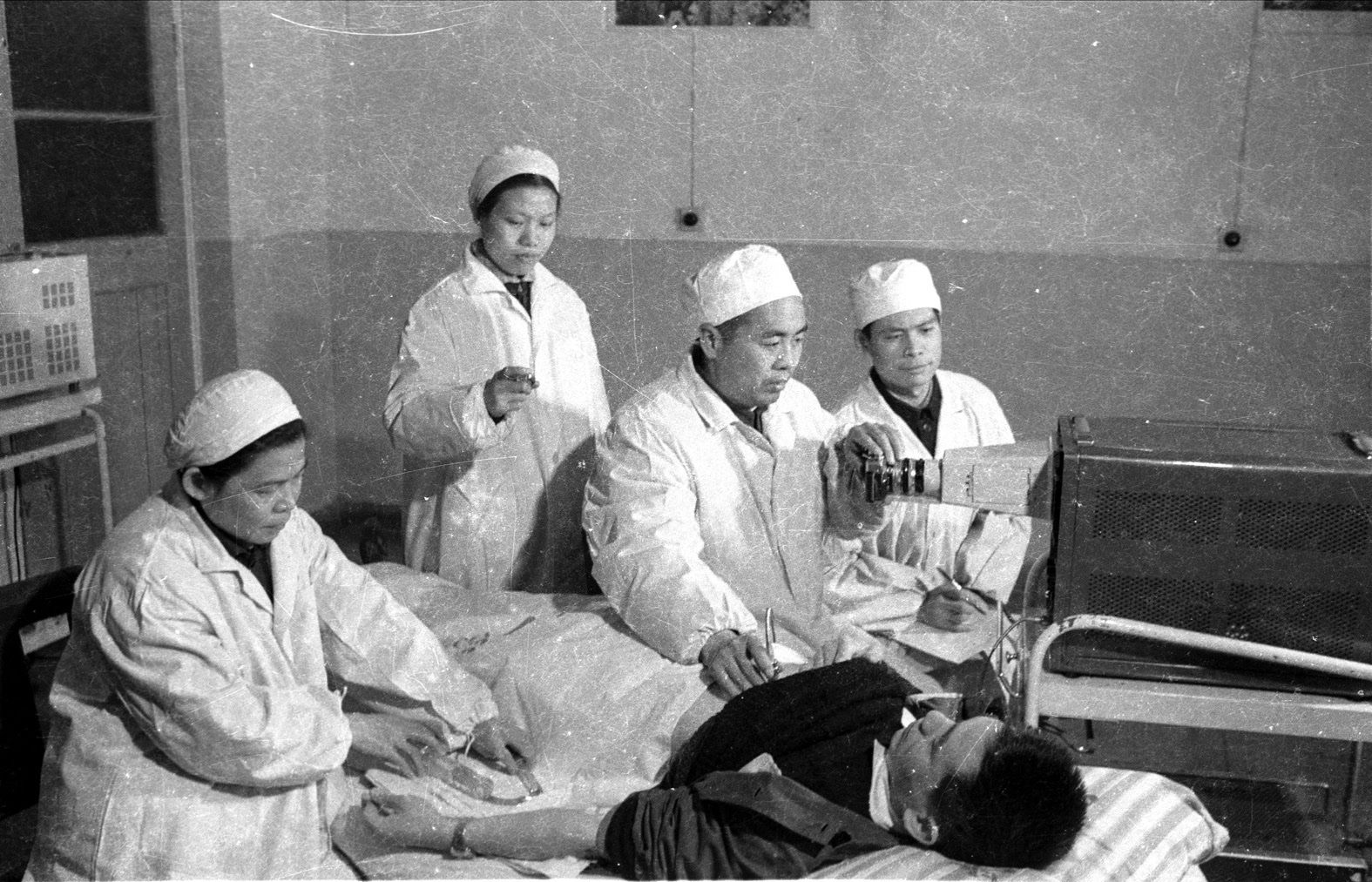 1978年1月8日,王新房所在医院的一间手术室里气氛紧张:医院主要领导赶到现场,心内、心外两科室主任严阵以待,王新房躺在手术台上,准备拿自己做“双氧水心脏声学造影法”的第一例人体临床实验。