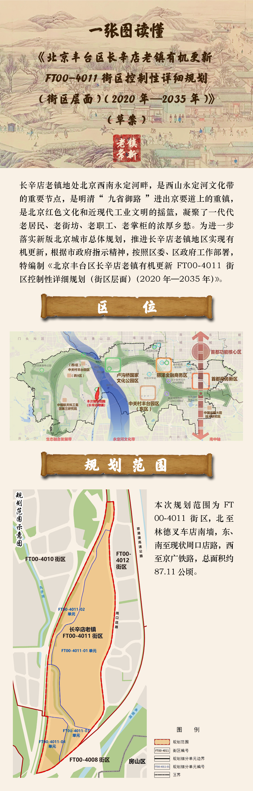下面带您一张图读懂《北京丰台区长辛店老镇有机更新FT00-4011街区控制性详细规划(街区层面)(2020年—2035年)》(草案)