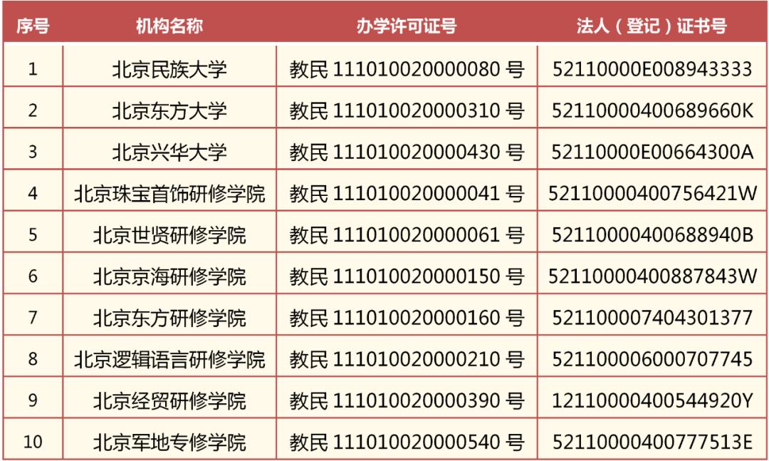 近日,市教委印发《北京市教育委员会关于10所民办学校办学许可证废止并注销的公告》(京教民〔2021〕26号)。北京民族大学、北京东方大学、北京兴华大学等10所民办学校办学许可证到期后未依法予以延续,自公告之日起依法废止并注销。