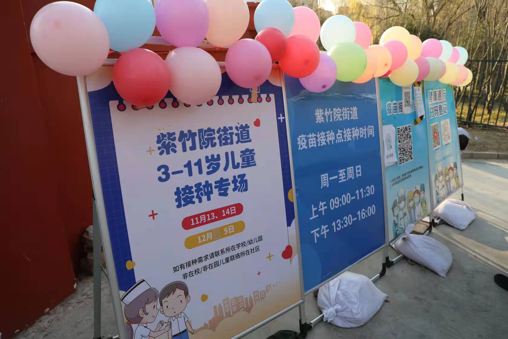 在海淀区紫竹院街道新冠疫苗接种点,鲜艳夺目的彩色气球将这里装点得童趣盎然,接种点内播放着《儿童疫苗总动员》和《小猪佩奇》动画片,孩子们在监护人的陪同下到接种点集合报到,由幼儿园老师统一组织分批进入接种点。测温、查验健康码,有序进入等候区签署知情同意书,之后进行登记接种。现场工作人员为每位完成疫苗接种的“小勇士”送上彩色气球,表彰他们展现的勇气。同时,接种点内的疾控专家和医疗健康志愿服务队员向前来接种的家长宣传接种注意事项、免疫规划相关政策等内容,耐心解答家长有关疫苗和预防接种的各种问题,并指引大家有序留观。