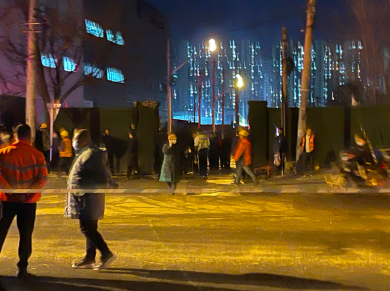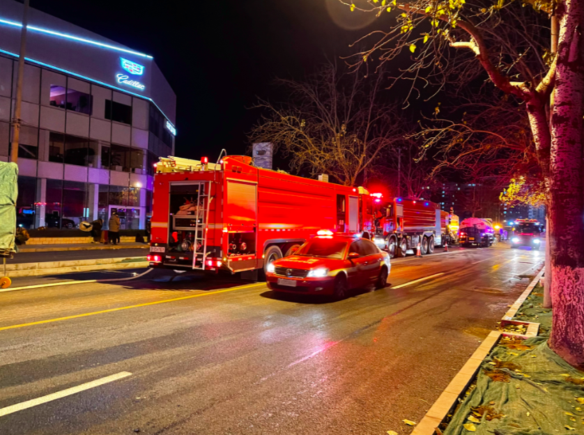 12月6日晚9时,记者赶到丰台区丰管路上,路两侧都围上了上百米长的警戒线。起火地点的明火已被扑灭,几十位消防员和警察在丰管路上值守,仍有数辆消防车和警车尚未撤离。由于起火地点是一处工地,工地内的工人也在成批向外撤离。