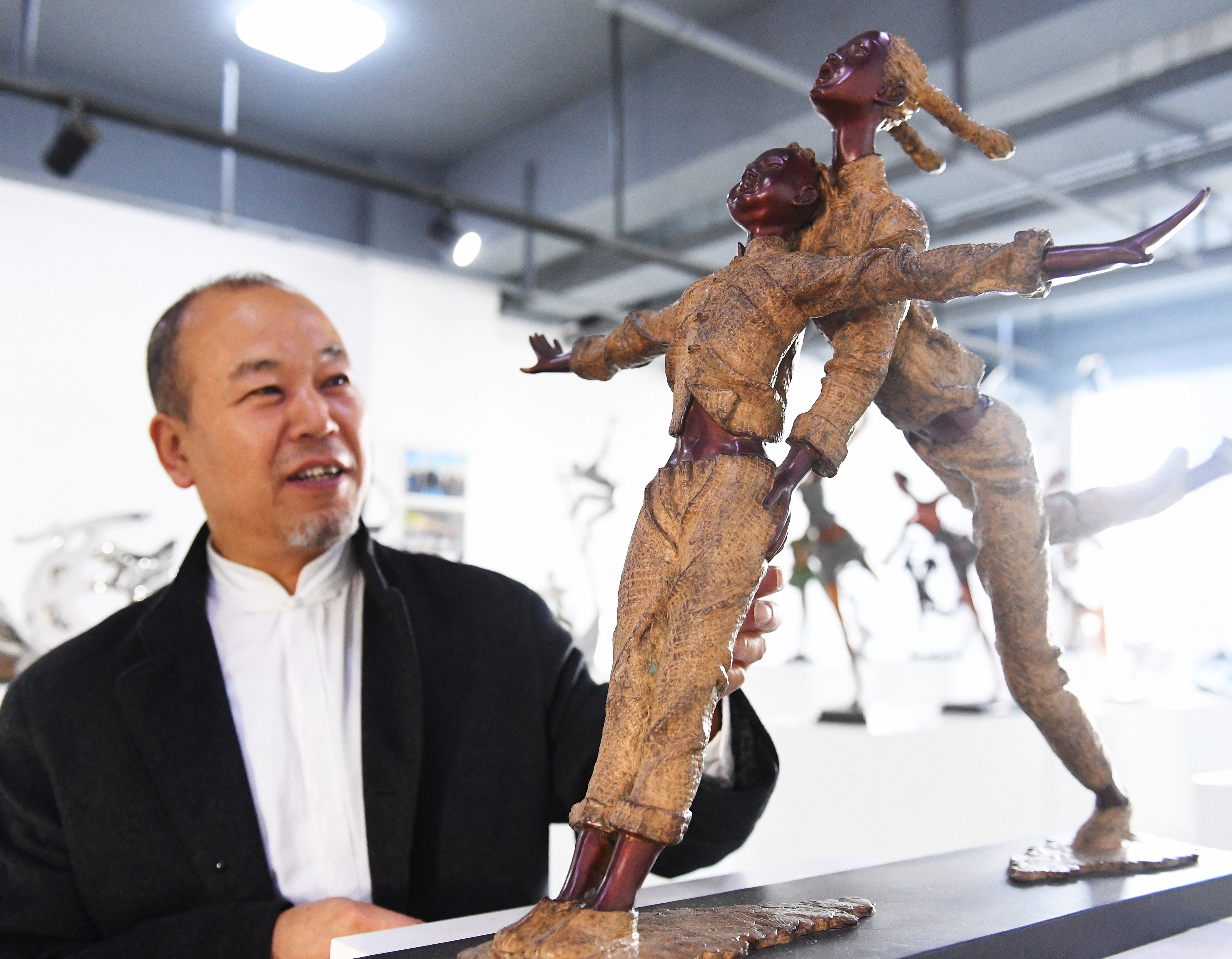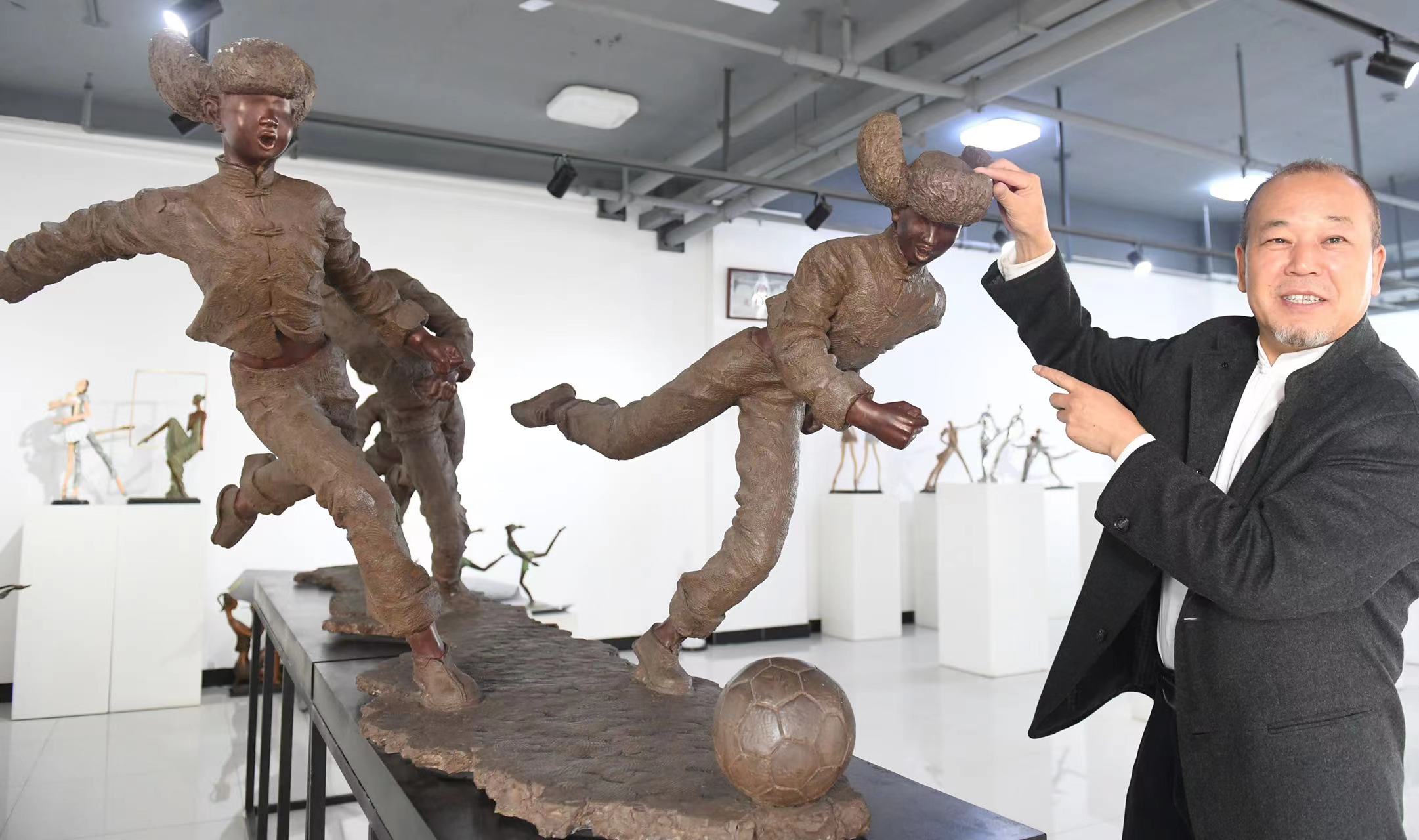 从展现空中跳跃姿态的单板滑雪,到动感十足的自由式滑雪,再到姿态优美的花样滑冰、动静结合的冬季两项等,雕塑家章华创作的五款冬奥题材作品前不久被列入北京2022官方特许商品,用艺术的方式传播冬奥文化。近日,记者前往位于通州宋庄的章华雕塑工作室,听他讲述了自己的“双奥”情缘。