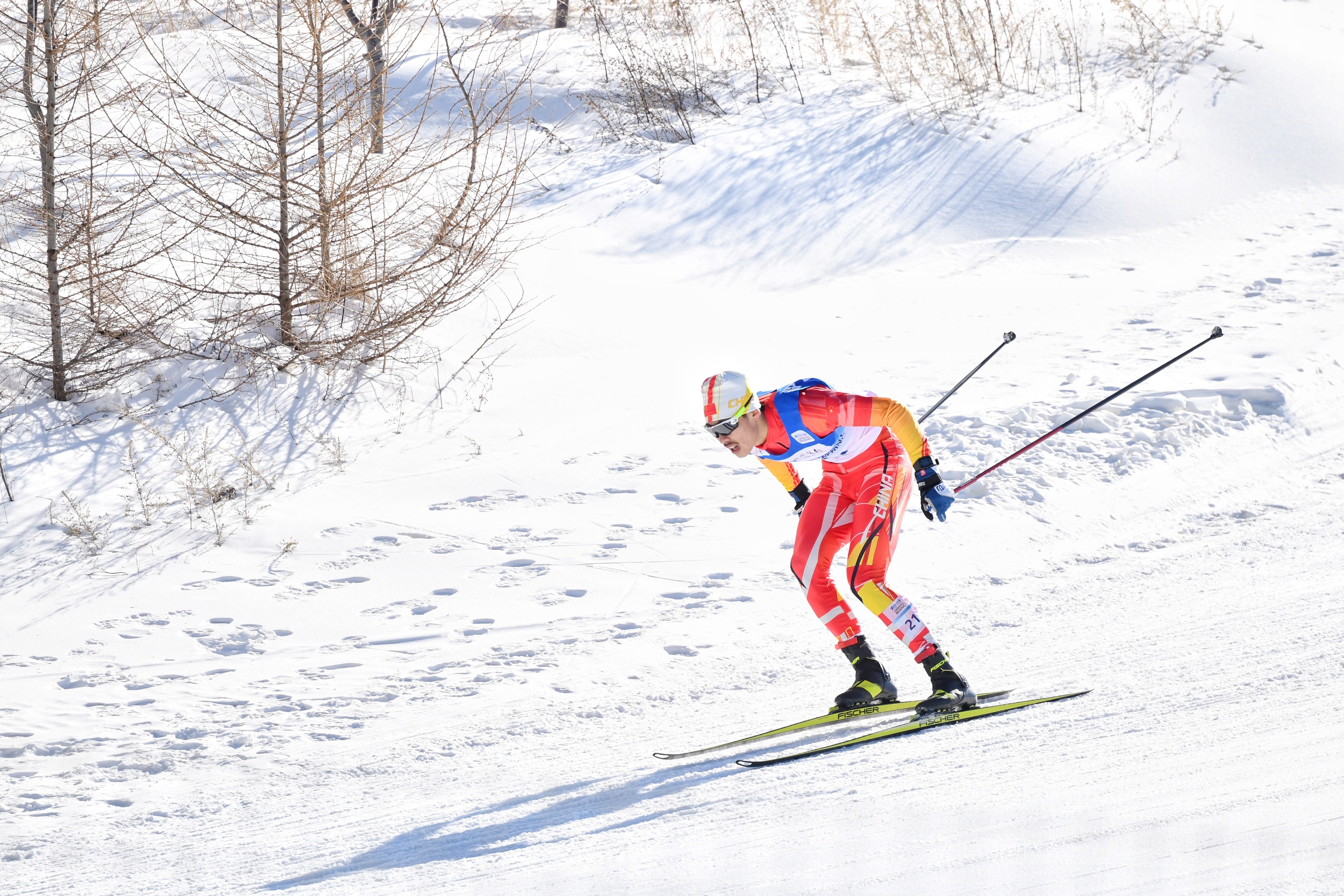 选手在“相约北京”冬奥测试赛2021/2022国际雪联北欧两项洲际杯比赛中。北京日报客户端记者 邓伟 摄