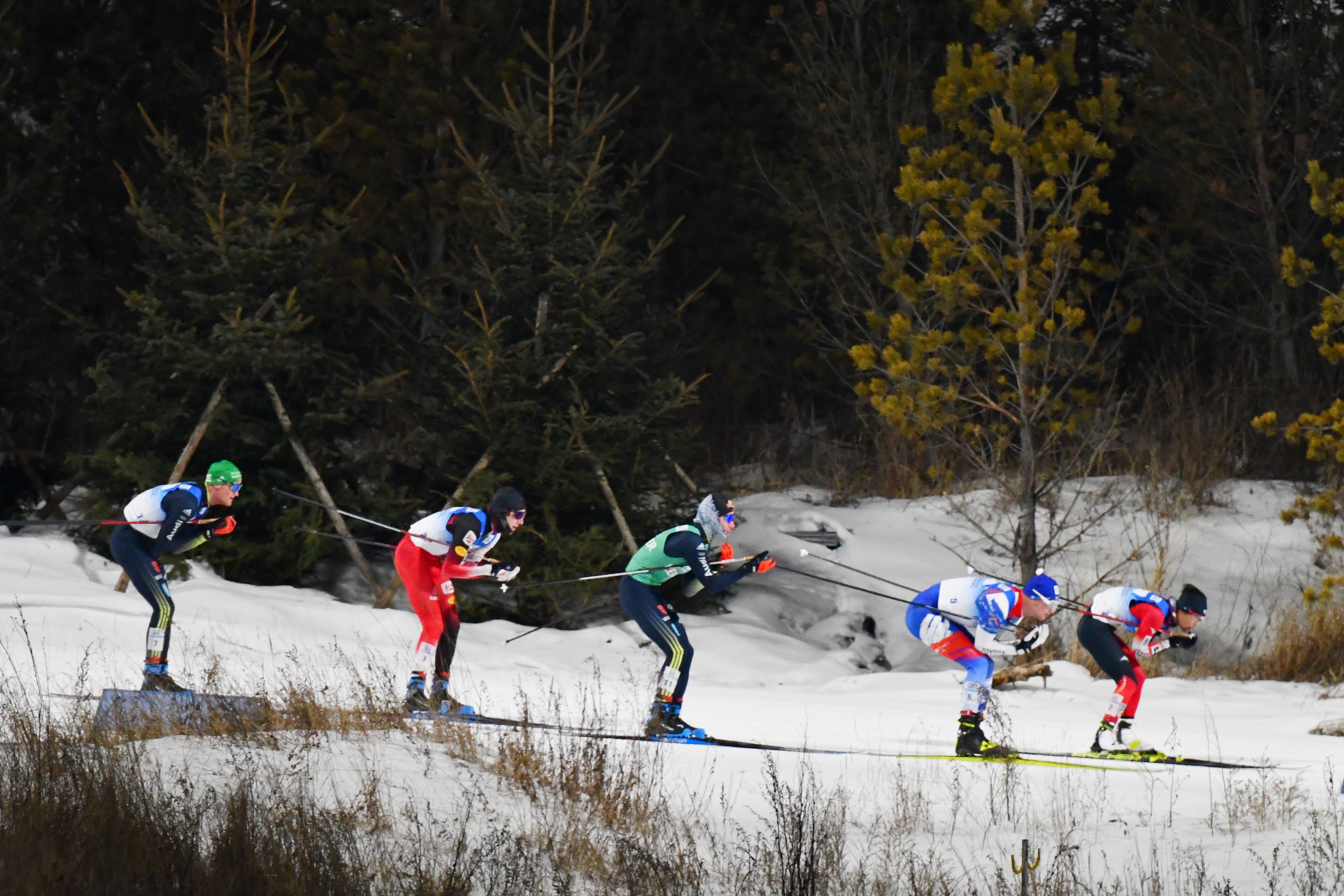 选手们在“相约北京”冬奥测试赛2021/2022国际雪联北欧两项洲际杯比赛中。北京日报客户端记者 邓伟 摄