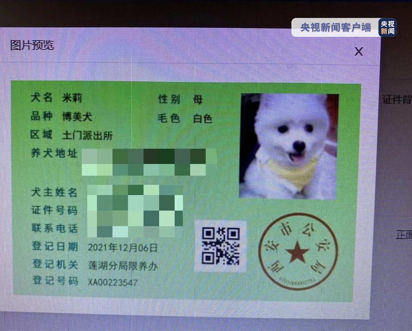 依据《西安市限制养犬条例》,狗主人杨某被警方处以1300元罚款,两只犬被暂扣。西安市公安局莲湖分局限养办工作人员介绍,目前两只犬已取得“合法身份”,一只被原主人领回,另一只被爱心人士收养。