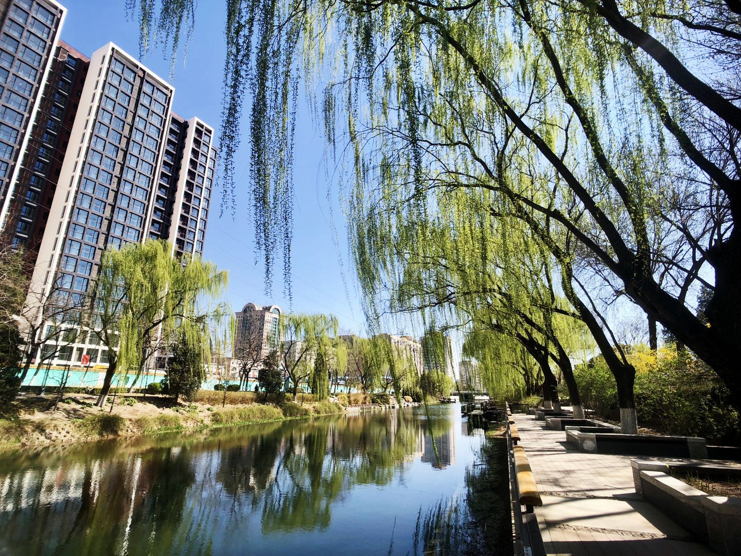 北护城河位于北二环路北侧,紧邻北二环公路及居民小区,一年四季如美丽的生态园,上至耄耋老人,下至幼儿园孩童,络绎不绝前来看鸟、观鱼、认草、亲水、漫步、健身,从白日的阳光明媚、绿意盎然,到晚间的古色古香,无一不吸引市民驻足。