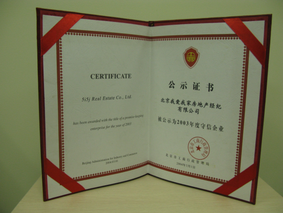 我爱我家守信企业证书