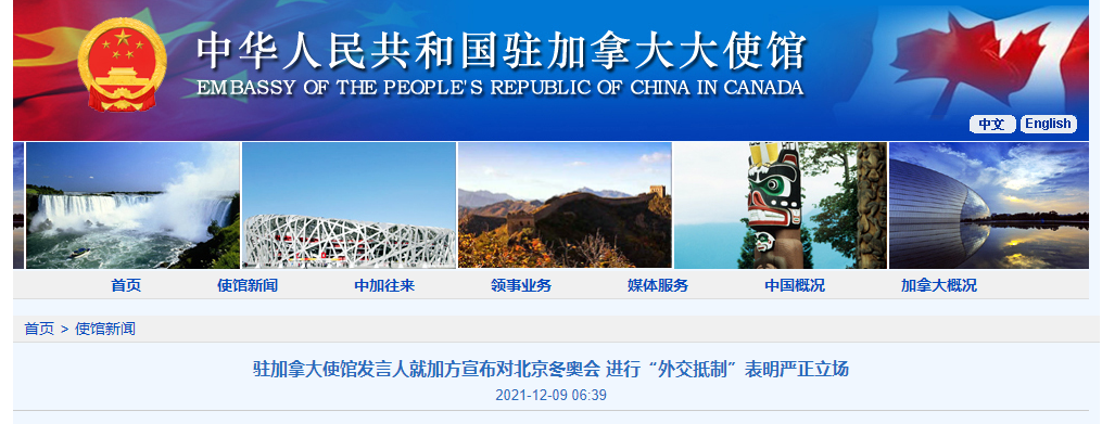 12月8日,加拿大总理特鲁多公然诬称中国存在“侵犯人权”的行为,并以此为借口宣布加方不派“外交代表”出席北京冬奥会。中方表示强烈不满和坚决反对,已向加方提出严正交涉。