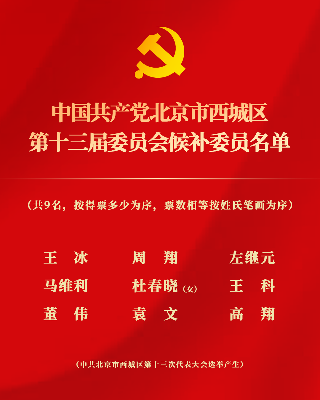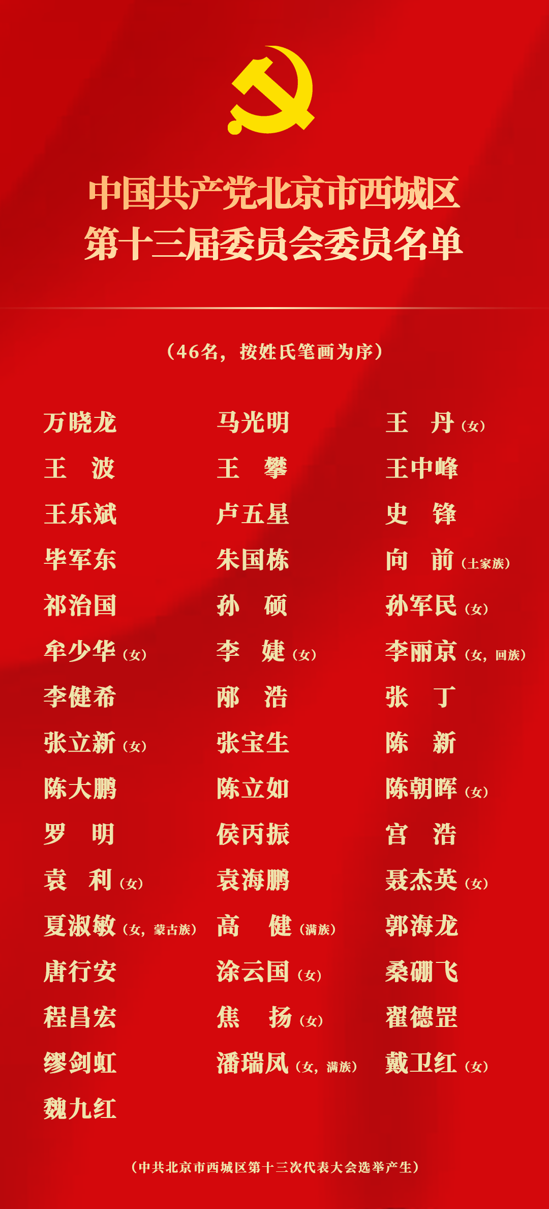 中国共产党北京市西城区第十三届委员会委员、候补委员名单