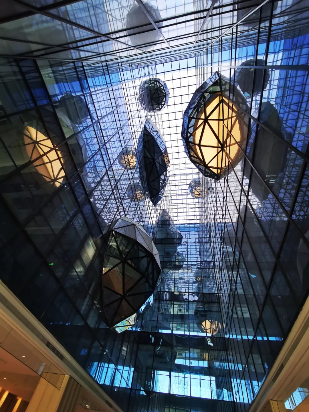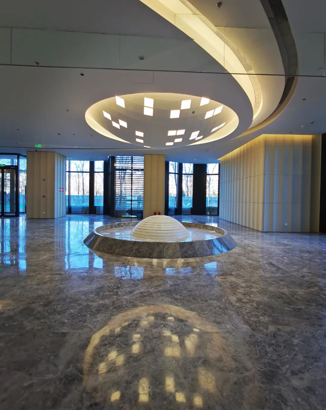 主楼落客区的海浪造型、中庭“苍穹之顶”