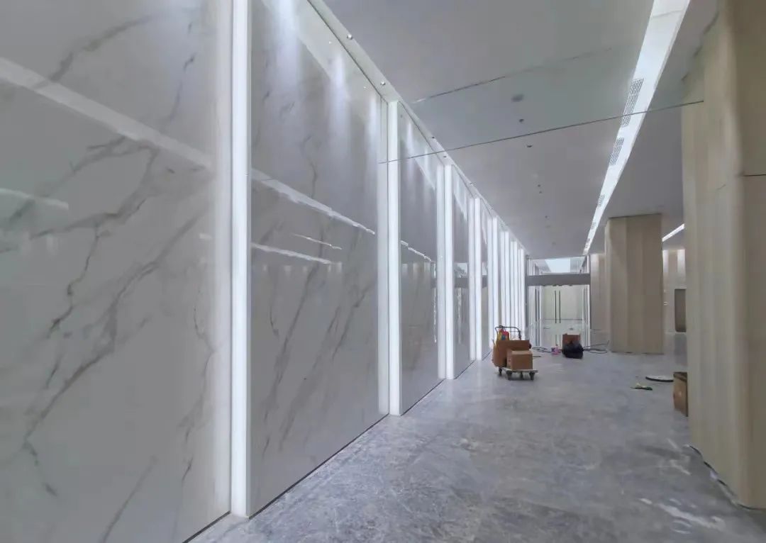 电梯间、楼梯间采用石材、陶板、硅晶板吊顶