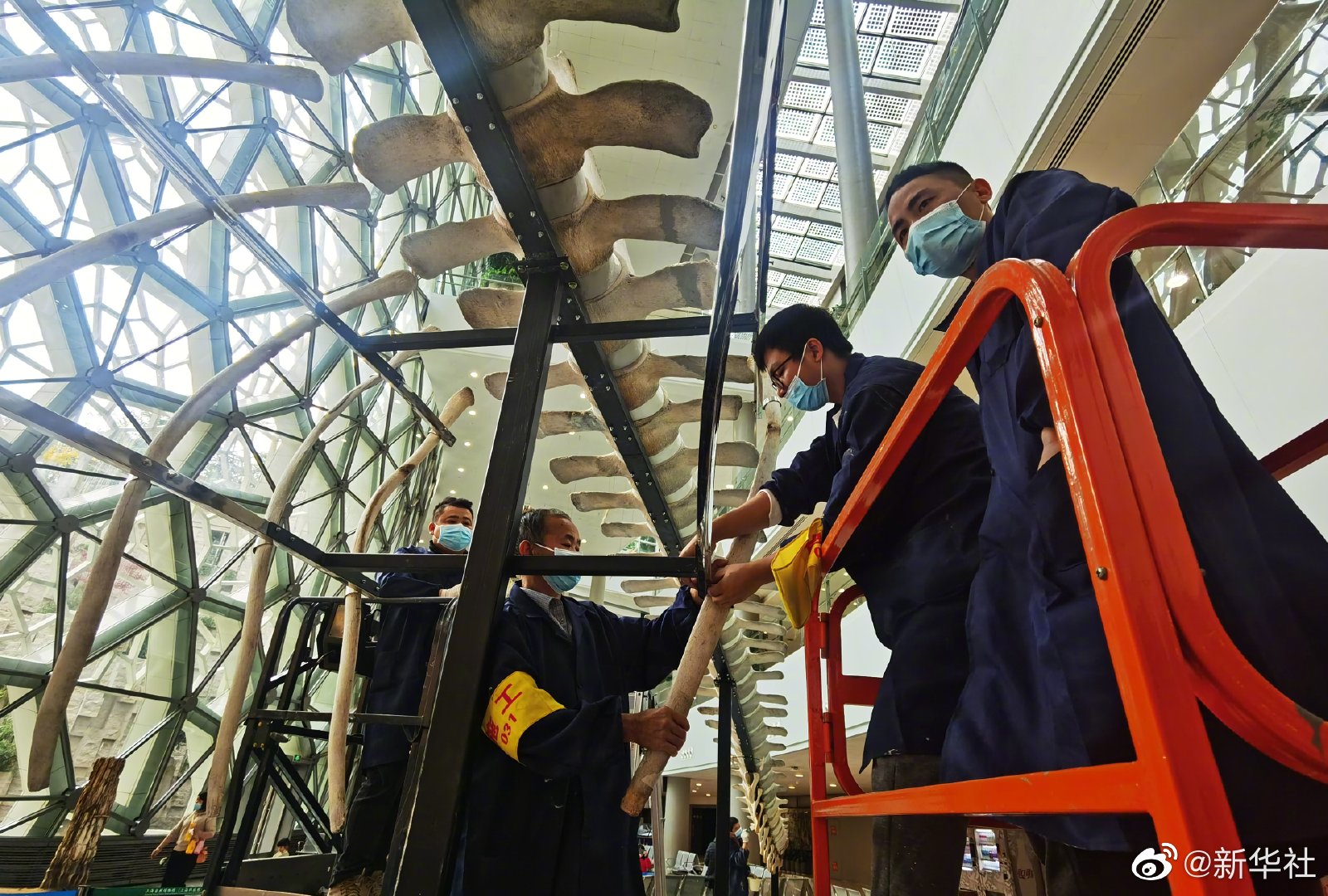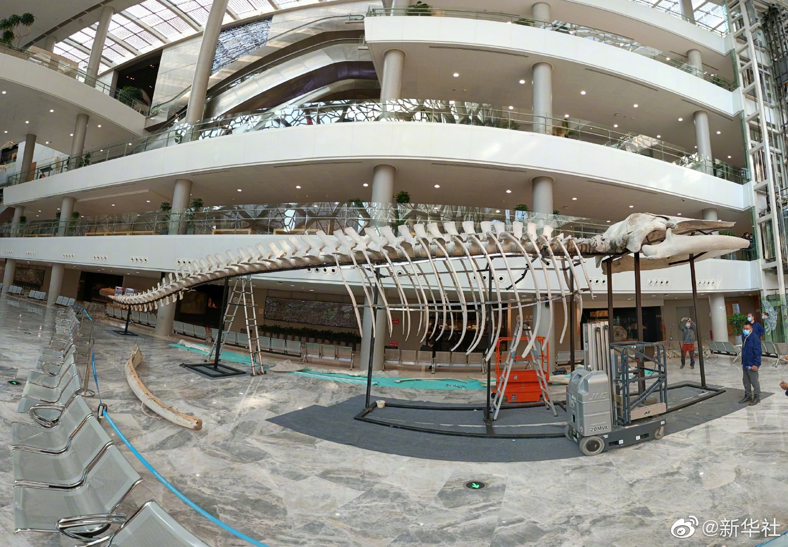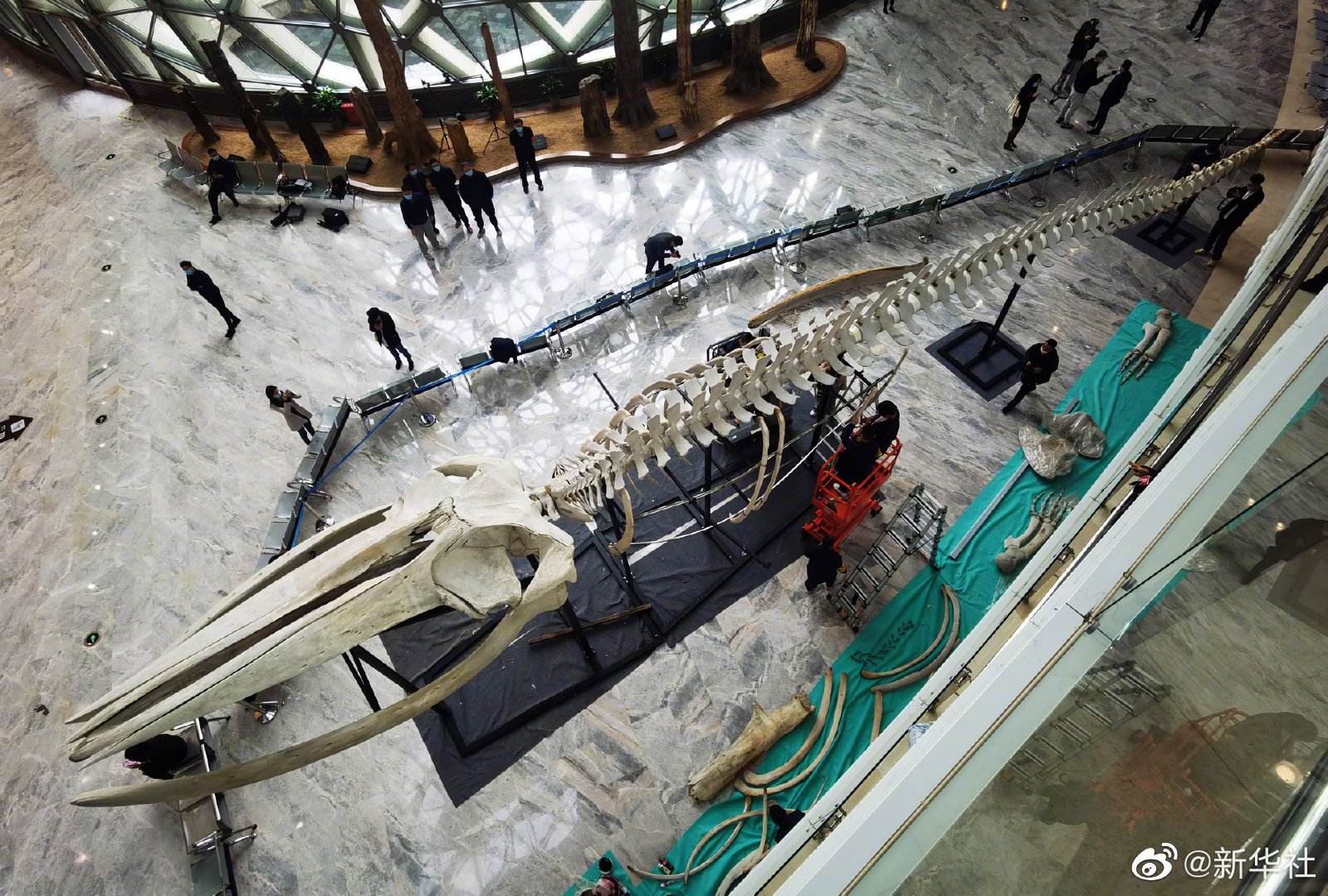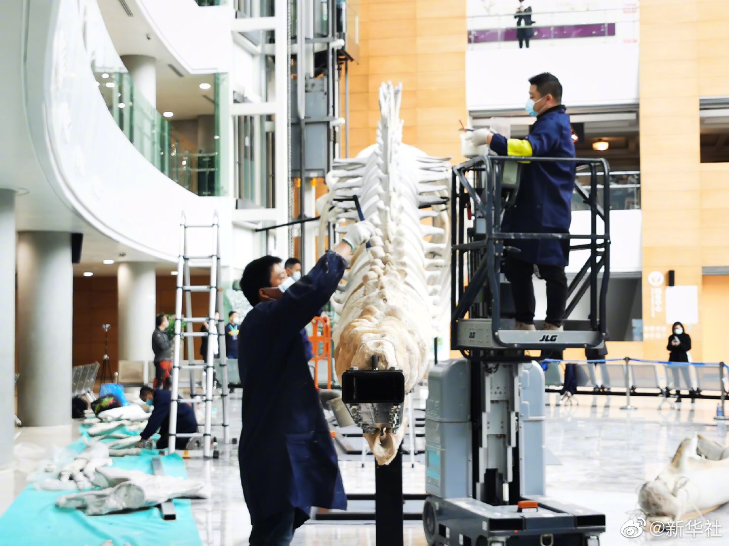 2017年3月在上海发现搁浅死亡的雄性长须鲸,经过生物降解去肉、去脂处理等程序,成为标本,9日在上海自然博物馆(上海科技馆分馆)亮相。这副标本长约24米,重量达3吨,共由约200块骨骼组成。