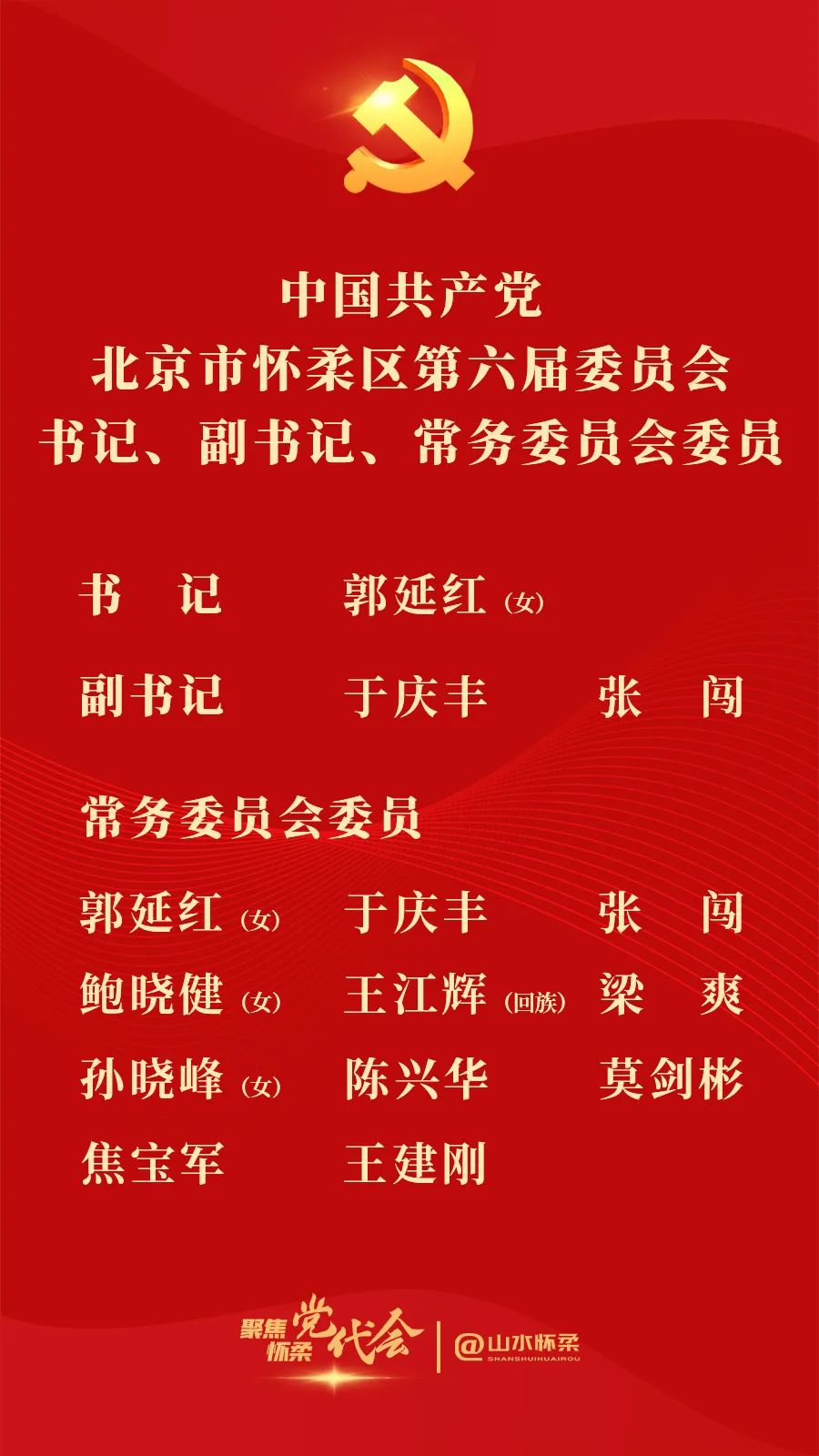 郭延红当选怀柔区委书记,于庆丰、张闯当选副书记