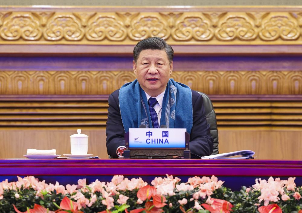 ↑2021年11月12日晚,国家主席习近平在北京以视频方式出席亚太经合组织第二十八次领导人非正式会议并发表重要讲话。