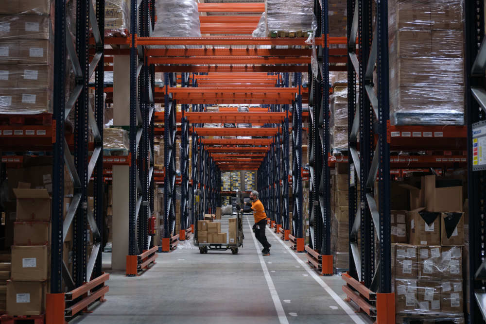 ↑2021年11月11日,工作人员在西班牙瓜达拉哈拉市的菜鸟网络所设立的海外仓中工作。
