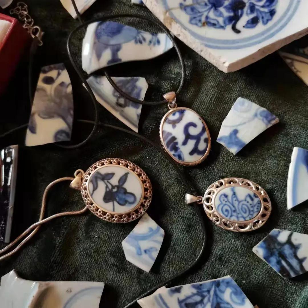 灯市口社区居民李慕黎利用破碎的瓷片,制作成了精美的项链、耳环、戒指等精美的首饰,既实用又美观。