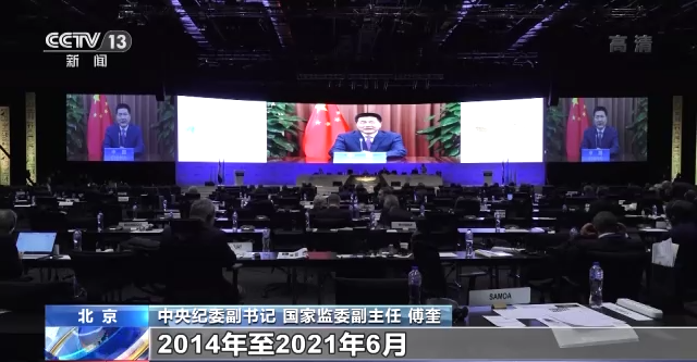 中国代表团线上出席会议。中央纪委副书记、国家监委副主任傅奎在视频发言中介绍中国共产党全面从严治党和反腐败斗争经验,表示中国认真履行《联合国反腐败公约》义务,高举多边主义旗帜,高度重视反腐败国际合作,积极开展跨境腐败治理和国际追逃追赃。呼吁各国拒绝成为腐败分子和腐败资产的“避风港”。中方愿与各方共同努力,坚持以中方提出的反腐败国际合作“四项主张”为引领,为构建人类命运共同体贡献力量。
