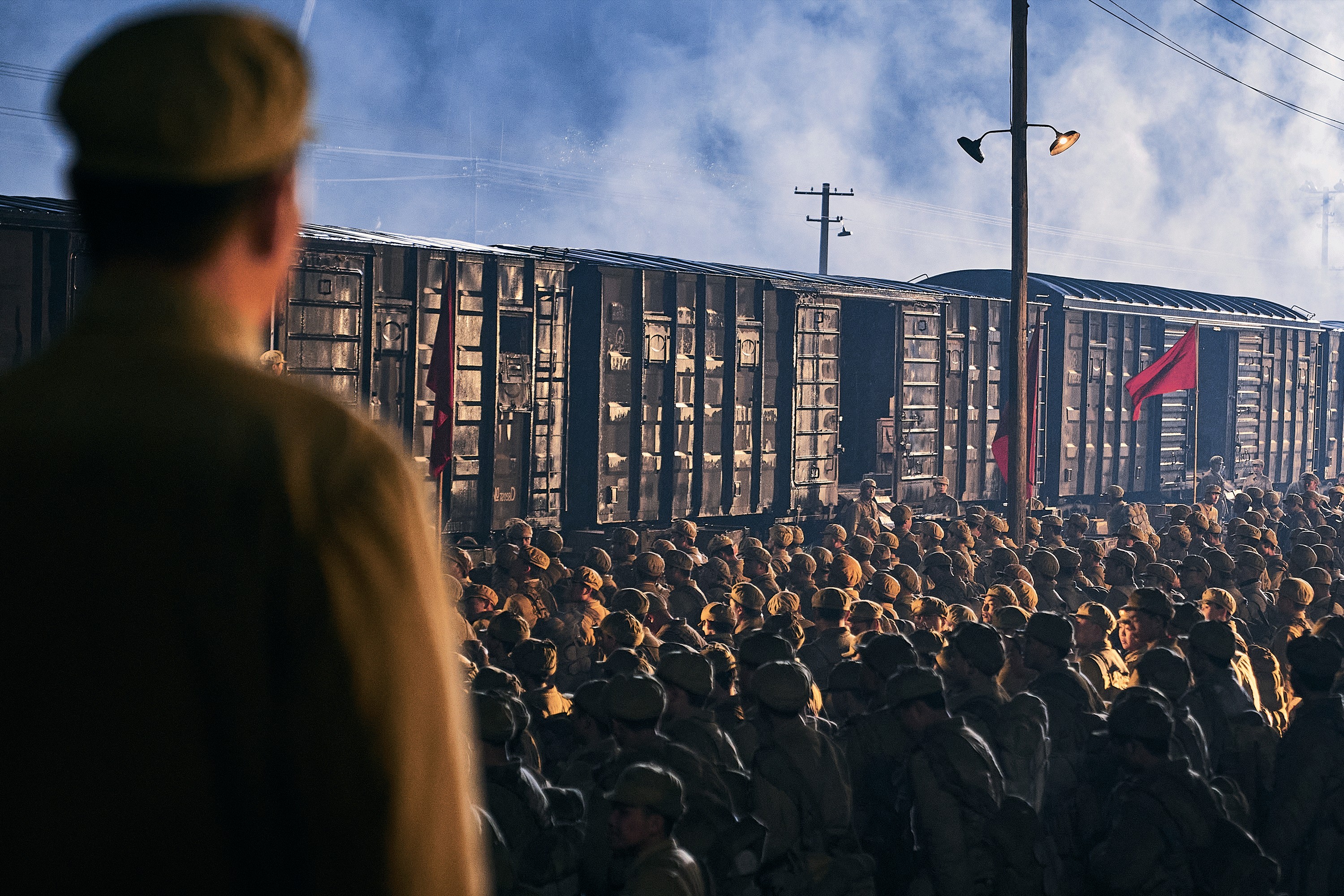 《长津湖》剧组在怀柔有名堂影视园的影棚内拍摄火车站场景