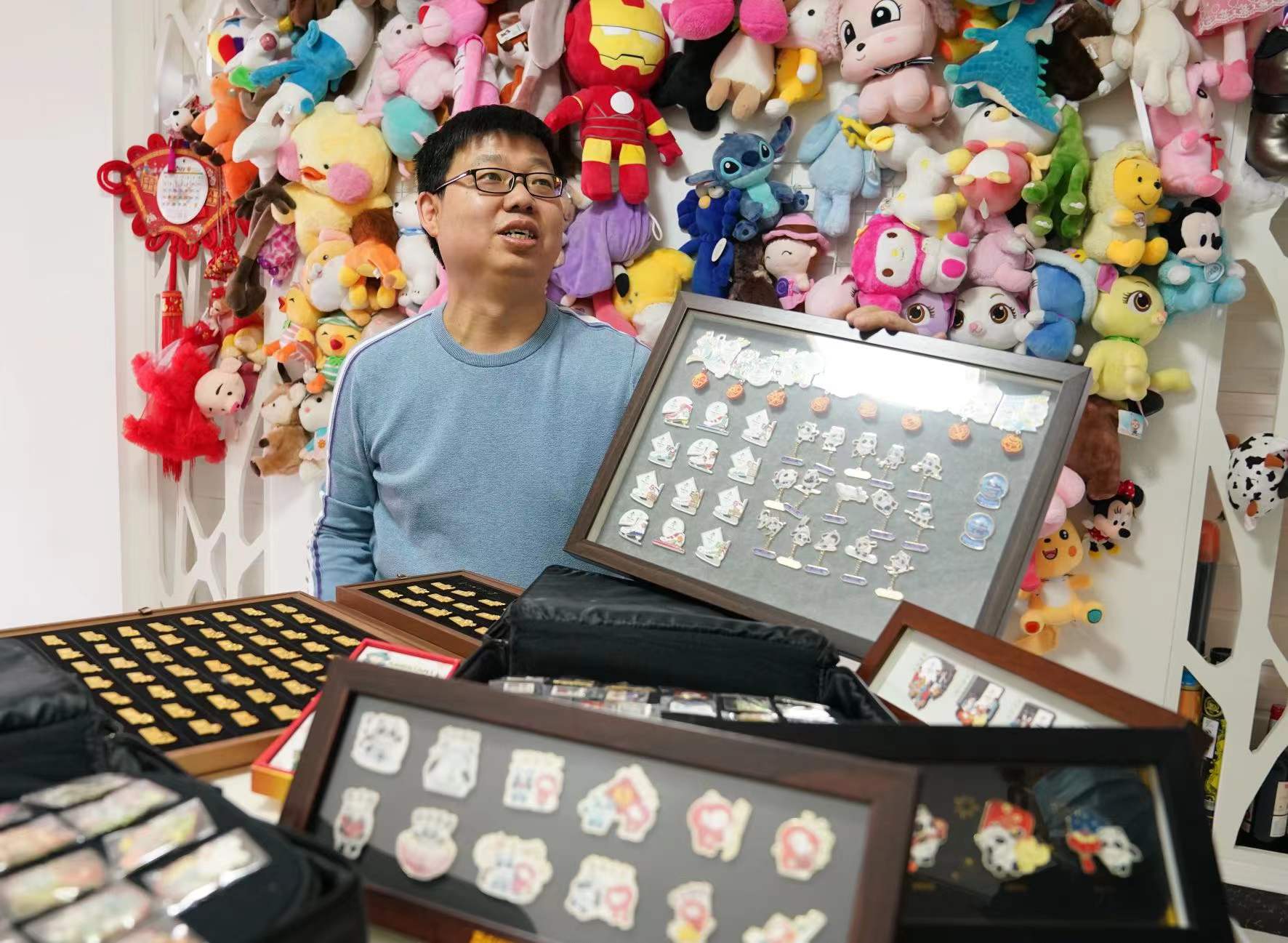 当然,墙上还有不少一家三口的照片,爱人是延庆当地人,也来自医疗行业,9岁的女儿正在上小学三年级,家人都支持高嵩的收藏爱好,女儿还加入其中,她喜欢收藏卡通人物徽章。收藏毛绒娃娃也是女儿的一大爱好,家里有400多个娃娃,墙壁上仅是九牛一毛。记者从细节中能感受到家庭的温馨,这也让他能够完全投入到工作当中,并实现志愿服务的梦想。